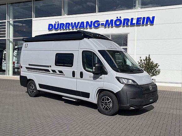 Aufstelldach schwarz, vorne komplett zu öffnen inkl. elektrischem Schließassistenten, Fliegengitter, Schwanenhalsleuchte und USB-Steckdose, mit hochwertiger Matratze