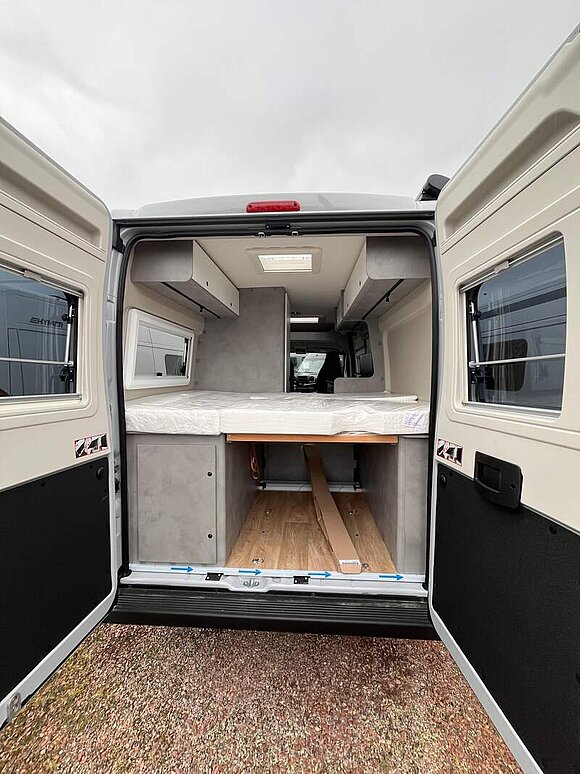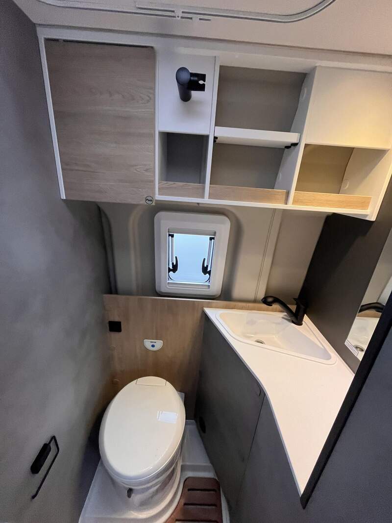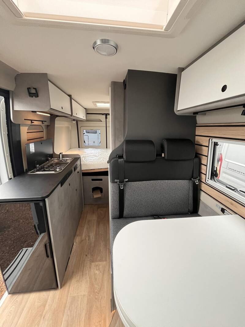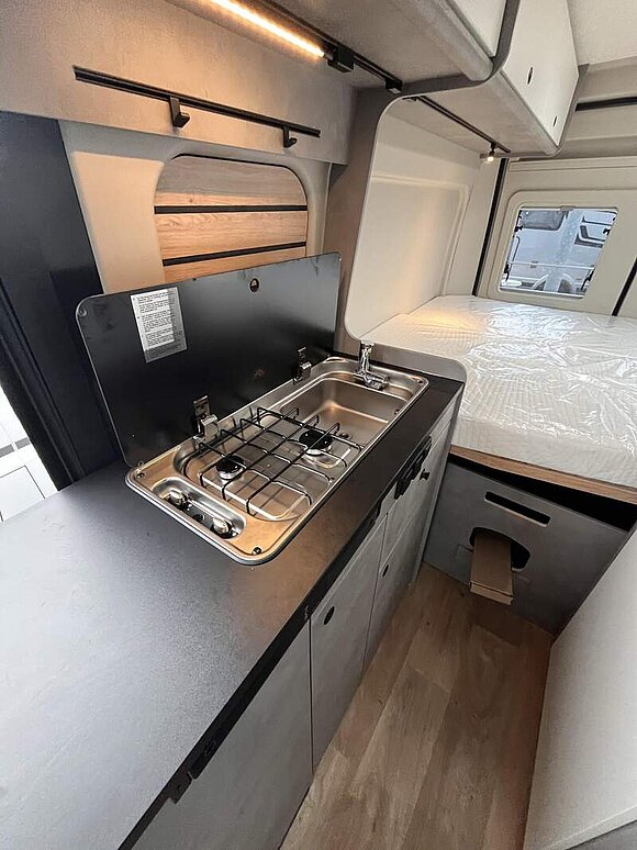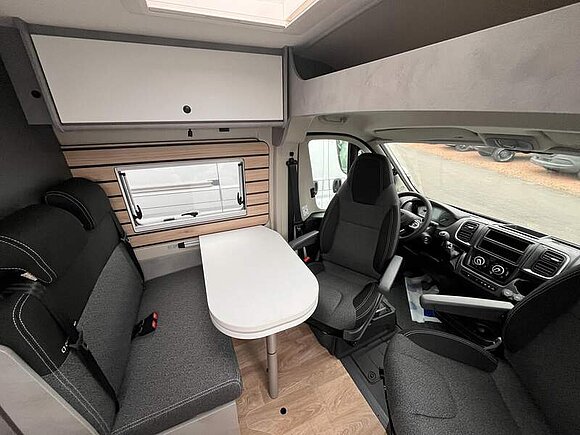 Base Kit (Falt-Sichtschutz in Fahrerhaus: Frontscheibe, Falt-Sichtschutz in Fahrerhaus: Seitenscheiben, Dachhaube Midi-Heki 70 x 50 cm über der Sitzgruppe mit Fliegenschutz und Verdunklungsrollo, Rahmenfenster im Wohnbereich (in Hecktüren Ausstellfenster), Fenster im Bad, Elektrische Einstiegsstufe, Holzrost in der Dusche, Kleiderstange im Bad, Drehplatte für Tischerweiterung, Duschausstattung (Brausekopf ausziehbar, Duschvorhang, Führungsschiene, Brausehalter))