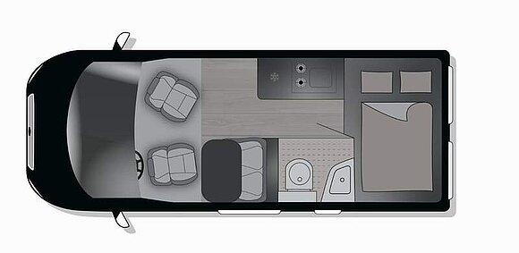 Base Kit (Falt-Sichtschutz in Fahrerhaus: Frontscheibe, Falt-Sichtschutz in Fahrerhaus: Seitenscheiben, Dachhaube Midi-Heki 70 x 50 cm über der Sitzgruppe mit Fliegenschutz und Verdunklungsrollo, Rahmenfenster im Wohnbereich (in Hecktüren Ausstellfenster), Fenster im Bad, Elektrische Einstiegsstufe, Holzrost in der Dusche, Kleiderstange im Bad, Drehplatte für Tischerweiterung, Duschausstattung (Brausekopf ausziehbar, Duschvorhang, Führungsschiene, Brausehalter))