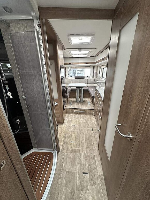über Sitzgruppe Heck, Dunstabzugshaube (Abluft) mit Zugluft-