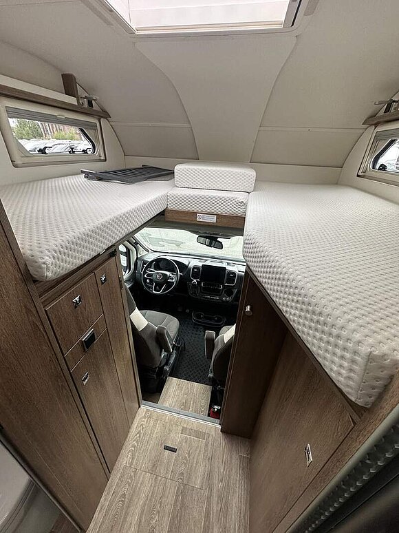 über den Dachstauschränken, Verdunklungsjalousien im FH, Panoramafenster (2 x Panoramadachhaube 70x50 cm quer)