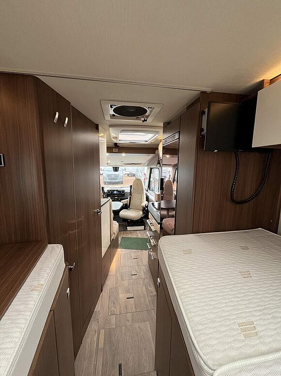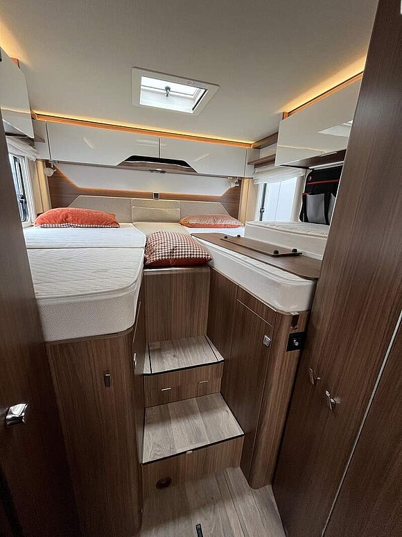 Zusatzpolster zwischen den Längseinzelbetten inkl. integriertem Komfortaufstieg und Tablett