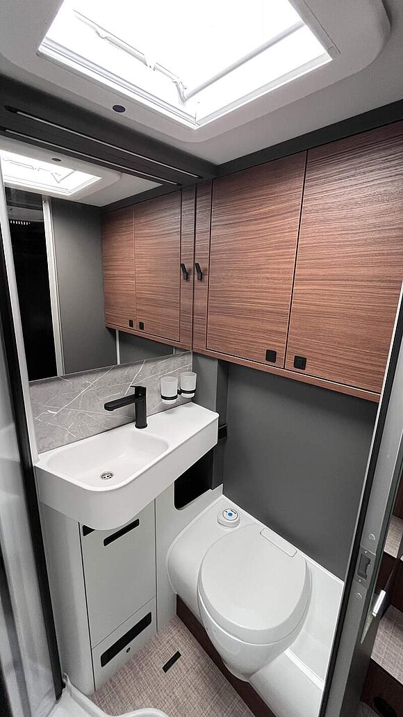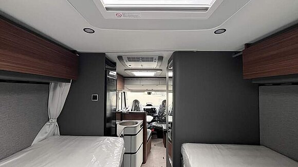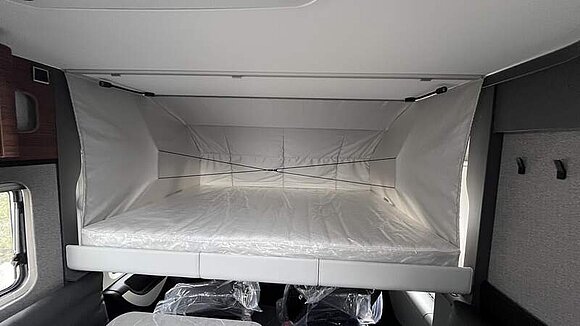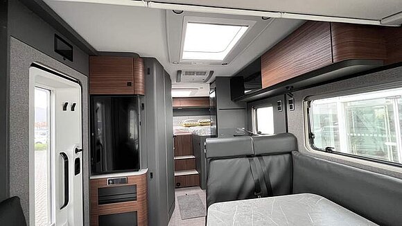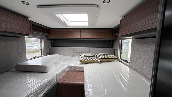 Wohnkomfort-Paket (Filzverkleidung in Heckgarage, Spannbettlaken nach Maß für Heckbetten individuell an Matratzen angepasst, 2 Kissen mit Bezug, Ambient-Light-System: Mehr-Ebenen Lichtsystem mit dynamischer und individueller Steuerung der Beleuchtung (inkl. Lichttemperatur) sowie stimmungsvoller Sockelbeleuchtung, 4 x 230 V / 2 x Doppel-USB Zusatzsteckdosen)