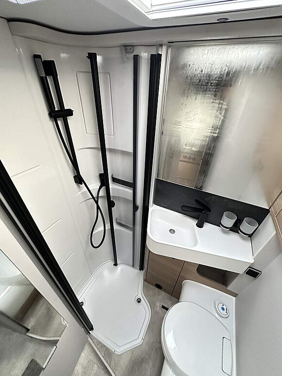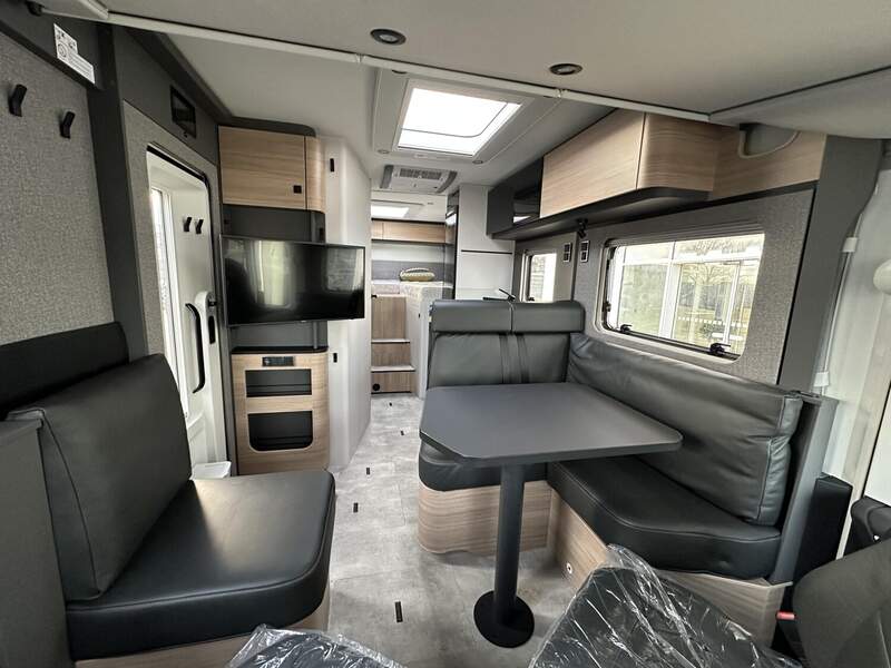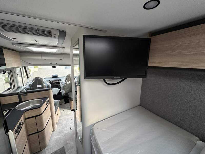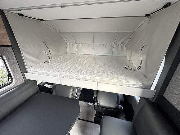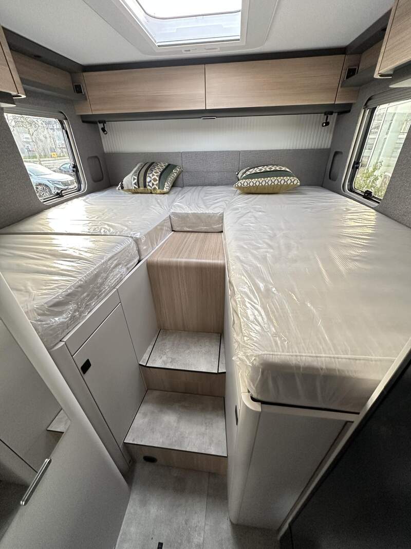 Wohnkomfort-Paket (Filzverkleidung in Heckgarage, Spannbettlaken nach Maß für Heckbetten individuell an Matratzen angepasst, 2 Kissen mit Bezug, Ambient-Light-System: Mehr-Ebenen Lichtsystem mit dynamischer und individueller Steuerung der Beleuchtung (inkl. Lichttemperatur) sowie stimmungsvoller Sockelbeleuchtung, 4 x 230 V / 2 x Doppel-USB Zusatzsteckdosen)
