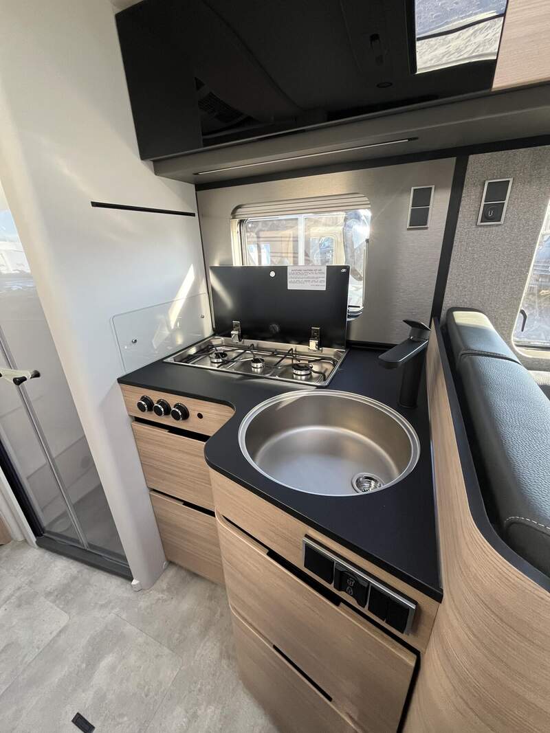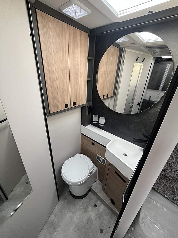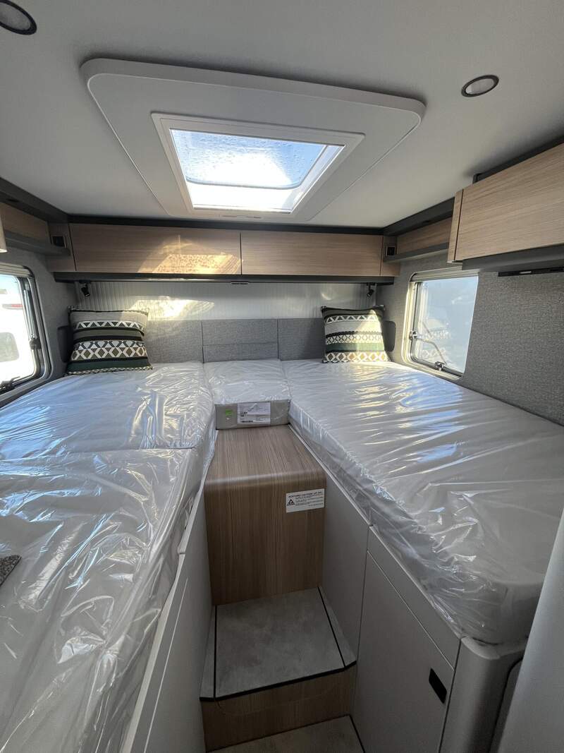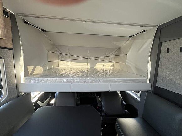 Wohnkomfort-Paket (Filzverkleidung in Heckgarage, Spannbettlaken nach Maß für Heckbetten individuell an Matratzen angepasst, 2 Kissen mit Bezug, Ambient-Light-System: Mehr-Ebenen Lichtsystem mit dynamischer und individueller Steuerung der Beleuchtung (inkl. Lichttemperatur) sowie stimmungsvoller Sockelbeleuchtung, 4 x 230 V / 2 x Doppel-USB Zusatzsteckdosen)
