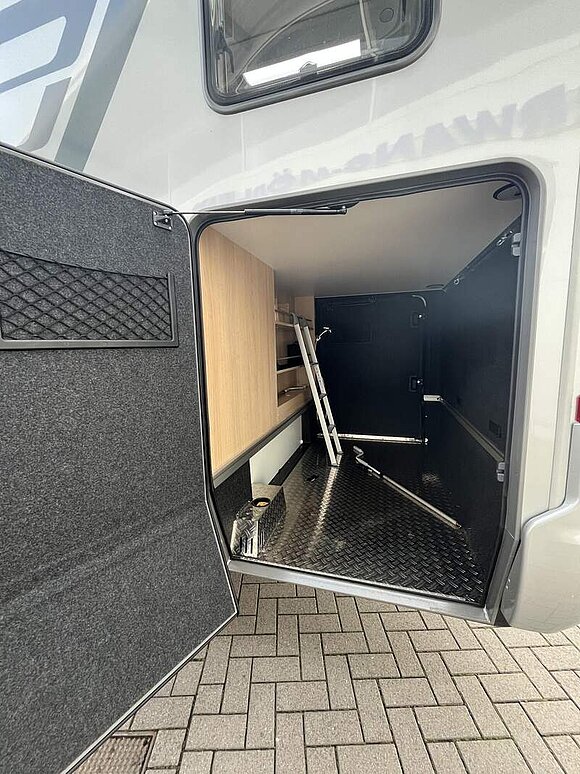 Riffelblechboden und Filzverkleidung in Heckgarage