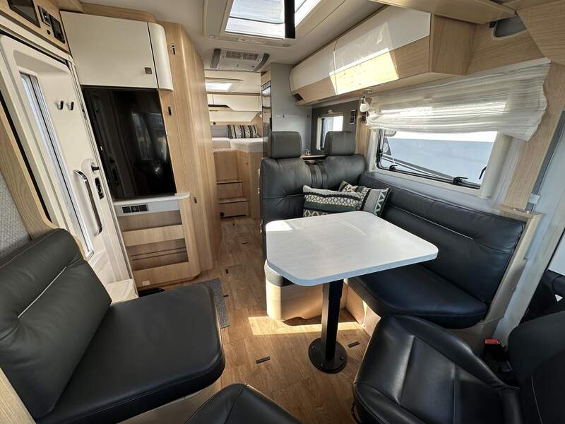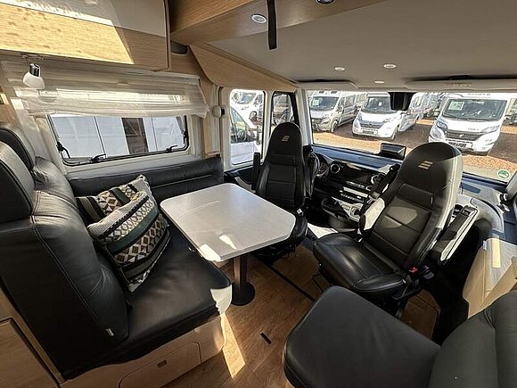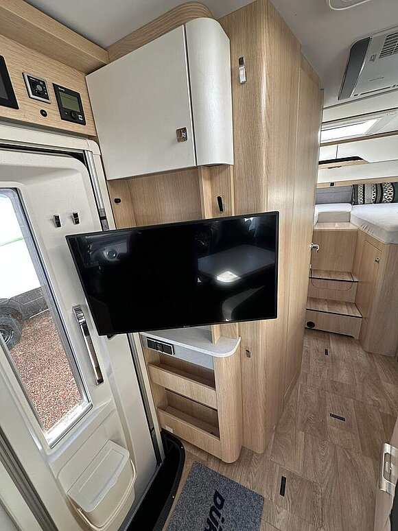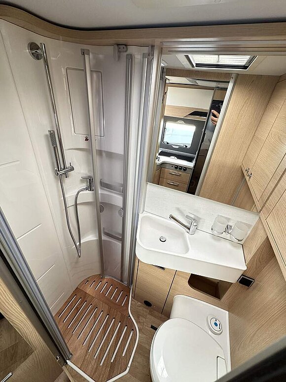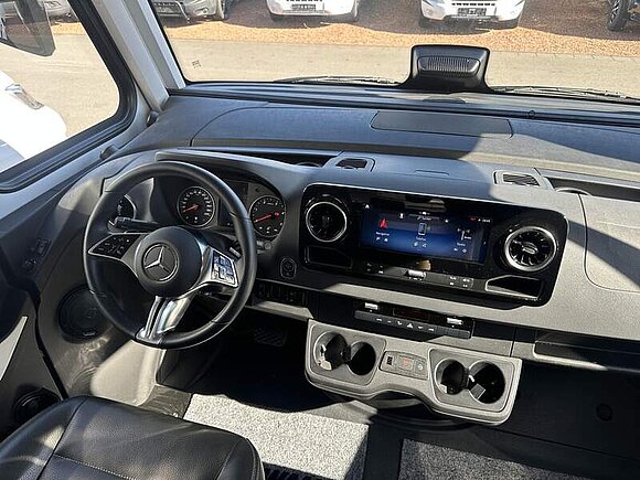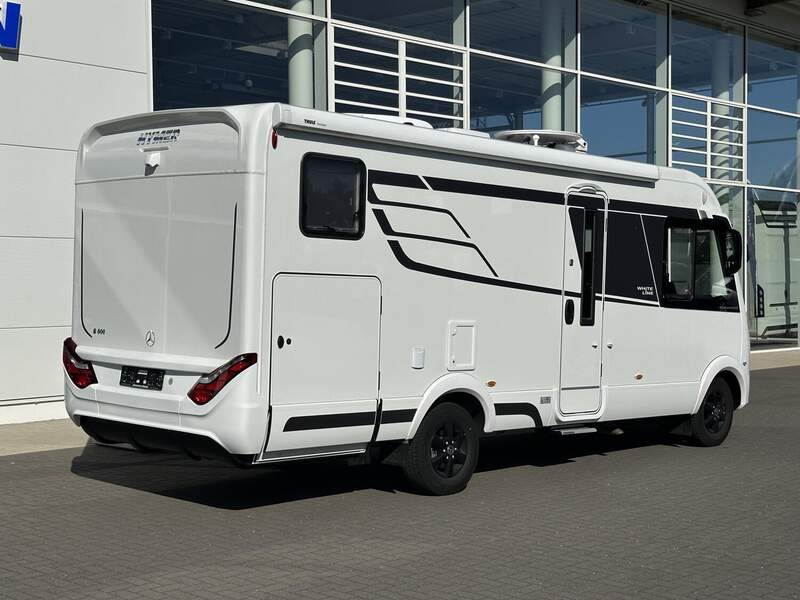 White Line Sondermodell: (WhiteLine: Mercedes-Benz Sprinter 4,43 t - 417 CDI - 125 KW/170 PS - Euro VI-E, Automatikgetriebe 9G-TRONIC inkl. Hold-Funktion, 92 l Kraftstofftank, Chrom-Ausführung Bug (Kühlergrill- / Nebelscheinwerferblende), Verstärkte Vorderachse, 16" Leichtmetallräder, Original Mercedes-Benz (Schwarz) mit Ganzjahresbereifung, Aktiver Abstands-Assistent DISTRONIC PLUS inkl. Lenkrad- Multifunktionstasten (Aufpreis zu Tempomat), Elektrische Parkbremse, Halbautomatische Klimaanlage Tempmatik, Lederlenkrad, Tempomat Mercedes-Benz inkl. Lenkrad- Multifunktionstasten, Designbeklebung Whiteline, Fahrertür mit elektrischem Fensterheber und Einstiegsbeleuchtung, Fenster mit Verdunkelungsrollo und integriertem Mülleimer in Eingangstür, Markise mit, Gehäuse weiß, 450 x 250 cm, Ambient-Light-System : 4-Ebenen Lichtsystem mit dynamischer und individueller Steuerung der Beleuchtung (inkl. Lichttemperatur) sowie stimmungsvoller Sockelbeleuchtung, Komfort L-Sitzgruppe mit Loungepolstern, längs-/quer verschiebbarem Tisch und 2 integrierten 3-Punkt-Gurten, Bettenbau für Komfort L-Sitzgruppe mit absenkbarem Tisch, Spannbettlaken nach Maß für Heckbetten individuell an Matratzenkonturen angepasst, 4 Kissen mit Bezug, Fliegenschutzrollo an der Eingangstür, Schublade und Einlegewanne für Kopfstützen in der Sitzgruppe, 4 x 230 V / 1 x 12 V / 1 x Doppel-USB Zusatzsteckdosen (inkl. Küchenwand-Verkleidung) Holzlattenrost in der Dusche, Mercedes-Benz MBUX 10,25" Multimedia System inkl. Navigation mit Lenkrad-Multifunktionstasten, DAB+, Touchscreen und Rückfahrkamera, 32" Flachbildschirmhalter 32" LED-Flachbildschirm mit integrierten Lautsprechern, Fernbedienung, DVD-Laufwerk, HYMER Smart-Multimedia- System mit Bluetooth (DVB-T/C, DVB-S2) inkl. Receiver ,Satellitenantenne digital mit 80 cm Spiegel)