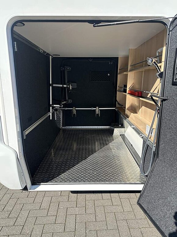 Riffelblechboden und Filzverkleidung in Heckgarage