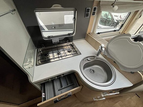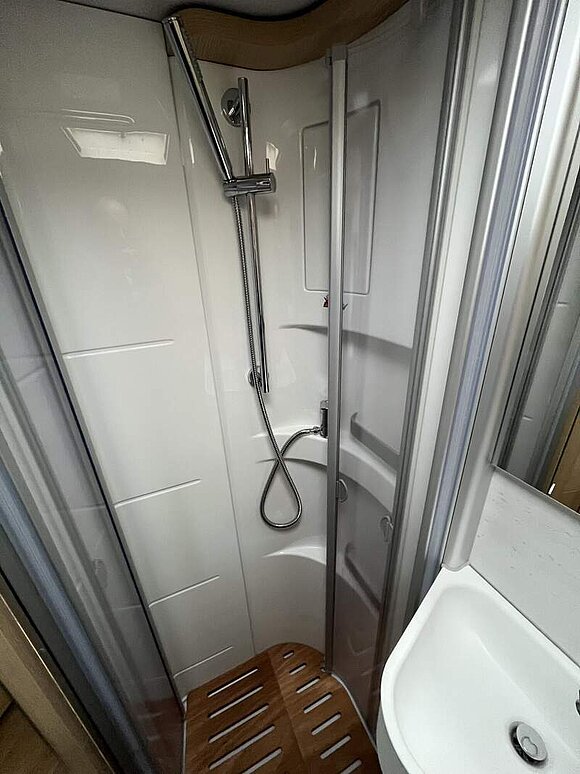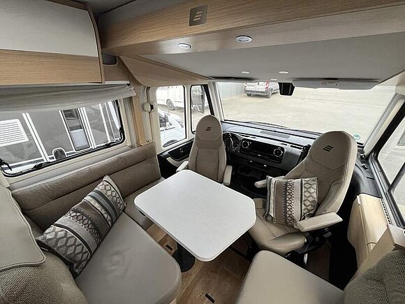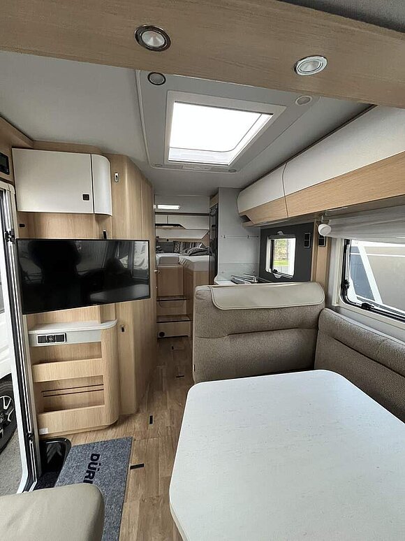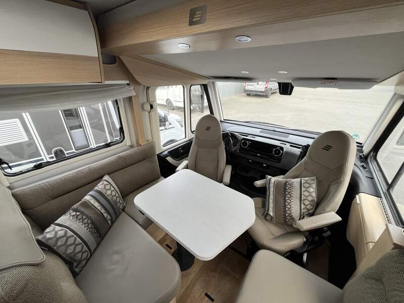 White Line Sondermodell: (WhiteLine: Mercedes-Benz Sprinter 4,43 t - 417 CDI - 125 KW/170 PS - Euro VI-E, Automatikgetriebe 9G-TRONIC inkl. Hold-Funktion, 92 l Kraftstofftank, Chrom-Ausführung Bug (Kühlergrill- / Nebelscheinwerferblende), Verstärkte Vorderachse, 16" Leichtmetallräder, Original Mercedes-Benz (Schwarz) mit Ganzjahresbereifung, Aktiver Abstands-Assistent DISTRONIC PLUS inkl. Lenkrad- Multifunktionstasten (Aufpreis zu Tempomat), Elektrische Parkbremse, Halbautomatische Klimaanlage Tempmatik, Lederlenkrad, Tempomat Mercedes-Benz inkl. Lenkrad- Multifunktionstasten, Designbeklebung Whiteline, Fahrertür mit elektrischem Fensterheber und Einstiegsbeleuchtung, Fenster mit Verdunkelungsrollo und integriertem Mülleimer in Eingangstür, Markise mit, Gehäuse weiß, 450 x 250 cm, Ambient-Light-System : 4-Ebenen Lichtsystem mit dynamischer und individueller Steuerung der Beleuchtung (inkl. Lichttemperatur) sowie stimmungsvoller Sockelbeleuchtung, Komfort L-Sitzgruppe mit Loungepolstern, längs-/quer verschiebbarem Tisch und 2 integrierten 3-Punkt-Gurten, Bettenbau für Komfort L-Sitzgruppe mit absenkbarem Tisch, Spannbettlaken nach Maß für Heckbetten individuell an Matratzenkonturen angepasst, 4 Kissen mit Bezug, Fliegenschutzrollo an der Eingangstür, Schublade und Einlegewanne für Kopfstützen in der Sitzgruppe, 4 x 230 V / 1 x 12 V / 1 x Doppel-USB Zusatzsteckdosen (inkl. Küchenwand-Verkleidung) Holzlattenrost in der Dusche, Mercedes-Benz MBUX 10,25" Multimedia System inkl. Navigation mit Lenkrad-Multifunktionstasten, DAB+, Touchscreen und Rückfahrkamera, 32" Flachbildschirmhalter 32" LED-Flachbildschirm mit integrierten Lautsprechern, Fernbedienung, DVD-Laufwerk, HYMER Smart-Multimedia- System mit Bluetooth (DVB-T/C, DVB-S2) inkl. Receiver ,Satellitenantenne digital mit 80 cm Spiegel)