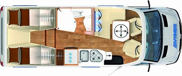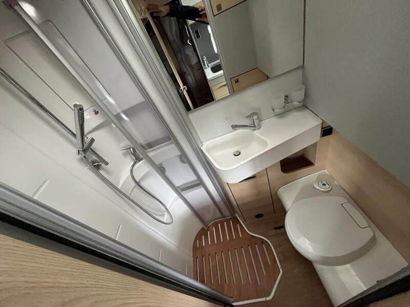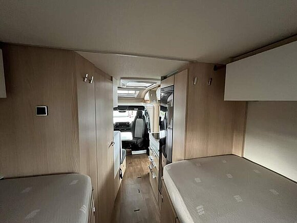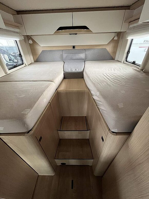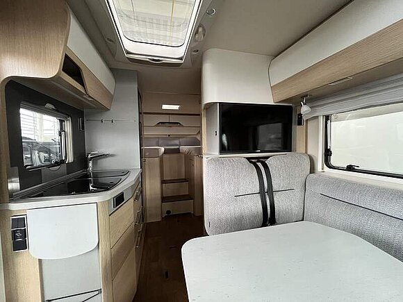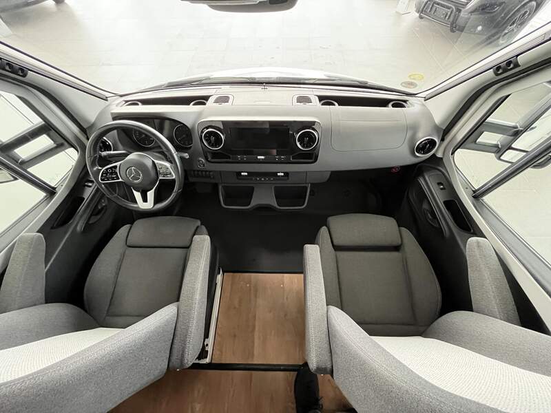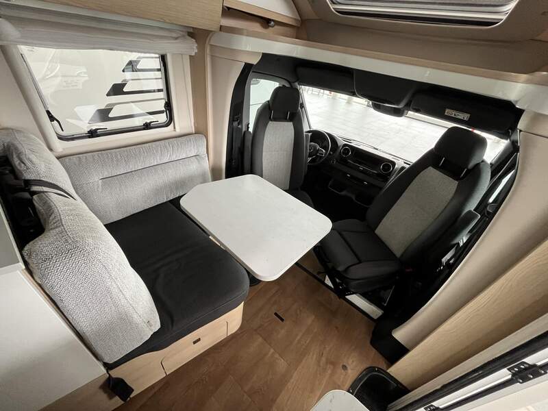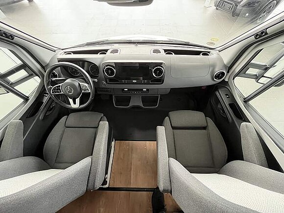 Komfort Plus-Paket 5 (Fliegenschutzrollo an der Eingangstür, Panoramadach über Fahrerhaus, manuell ausstellbar, Fenster mit Verdunkelungsrollo und integriertem Mülleimer in Eingangstür , Faltverdunkelung für Fahrerhaus, Schublade und Einlegewanne für Kopfstützen in der Sitzgruppe)