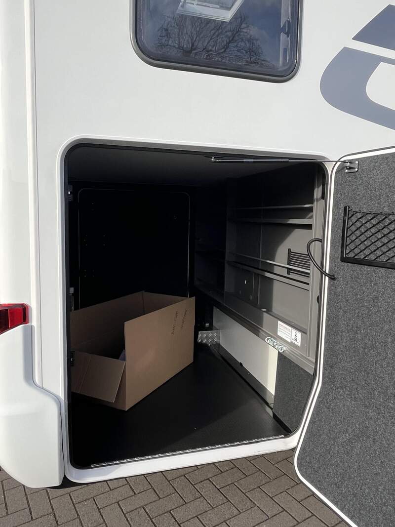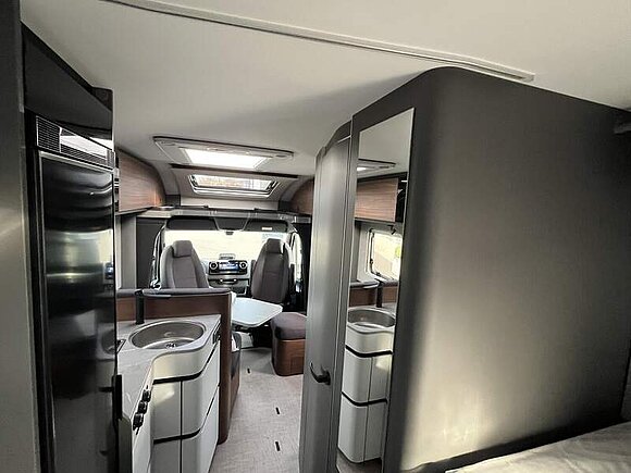 Wohnkomfort-Paket (Filzverkleidung in Heckgarage, Spannbettlaken nach Maß für Heckbetten individuell an Matratzen angepasst, 2 Kissen mit Bezug, Ambient-Light-System: Mehr-Ebenen Lichtsystem mit dynamischer und individueller Steuerung der Beleuchtung (inkl. Lichttemperatur) sowie stimmungsvoller Sockelbeleuchtung, 4 x 230 V / 2 x Doppel-USB Zusatzsteckdosen)