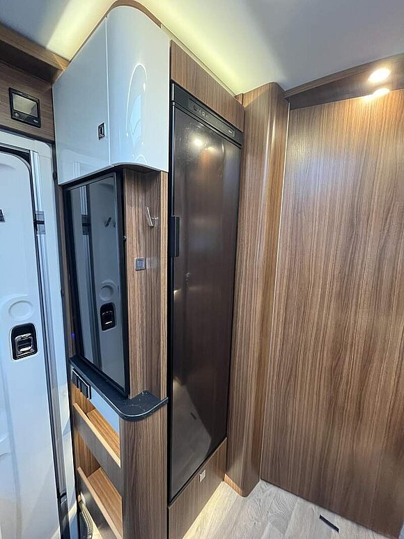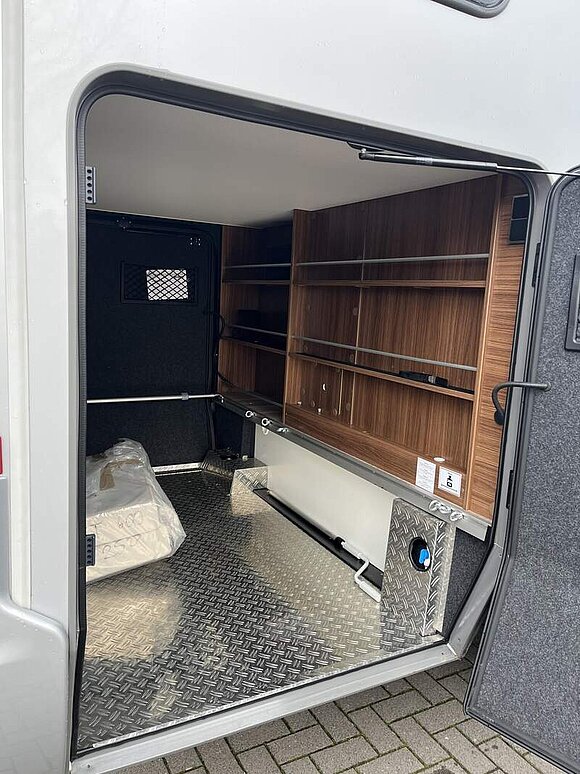 Arktis-Paket (Wärmetauscher für Gas-Warmwasserheizung, Wärmetauscher-Vorbereitung Mercedes-Benz, Gas-Warmwasser-Garagenbodenheizung, Riffelblechboden und Filzverkleidung in Heckgarage, Isolier-Trennvorhang für Fahrerhaus, doppellagig genäht, Isoliermatte für Fahrerhaus-Fußraum, lose beigelegt, Zuheizer (unterstützt die Heizung beim Erwärmen des Fahrzeugs), Gas-Warmwasserheizung)