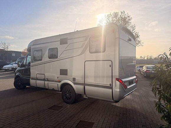 BLACKLINE B-MC T: PREISVORTEIL BIS ZU EUR 7.310,- (Mercedes-Benz Sprinter 4,43 t - 417 CDI - 125 KW/170 PS -Euro VI-E Außenfarbe Fahrerhaus Obsidianschwarz (Metallic)Außenfarbe Aufbau Crystal-Silver-Metallic Designbeklebung BlackLine Automatikgetriebe 9G-TRONIC inkl. Hold-Funktion Kühlergrill Chrom Stoßfänger, Anbauteile und Kühlergrillrahmen in Wagenfarbe lackiert16 Leichtmetallräder (schwarz) mit Ganzjahresbereifung Lederlenkrad (bei Automatikgetriebe) Aktiver Abstands-Assistent DISTRONIC PLUS inkl. Lenkrad-Multifunktionstasten Verkehrszeichen-Assistent Markise mit Adapter, Gehäuse schwarz, 400 x 250 cm Bettenbau für Komfort L-Sitzgruppe mit absenkbarem Tisch Komfort L-Sitzgruppe mit Loungepolstern, längs-/querverschiebbarem Tisch und 2 integrierten 3-Punkt-Gurten Schublade und Einlegewanne als Stauraum in der Sitzgruppe Spannbettlaken nach Maß für Heckbetten individuell an Matratzen angepasst4 Kissen mit Bezug Ambient-Light-System: Mehr-Ebenen Lichtsystem mit dynamischer und individueller Steuerung der Beleuchtung(inkl. Lichttemperatur) sowie stimmungsvoller Sockelbeleuchtung Einlegeboden mit Holzoberfläche4 x 230 V / 1 x 12 V / 1 x Doppel-USB Zusatzsteckdosen (inkl. Küchenwand-Verkleidung)HYMER Connect Sensoren-Paket inkl. 1x Gasfüllstandssensor, 1x Temperatursensor und 2x Kontaktsensor MBUX 10,25" Multimediasystem mit Rückfahrkamera, Sprachsteuerung und Touchscreen inkl. Navigation & Smartphone Integration 32" Flachbildschirmhalter 32" Smart-LED-TV mit integrierten Lautsprechern, Fernbedienung, DVD-Laufwerk, HYMER Smart-Multimedia-System mit Bluetooth (DVB-T/C, DVB-S2) inkl. Receiver)