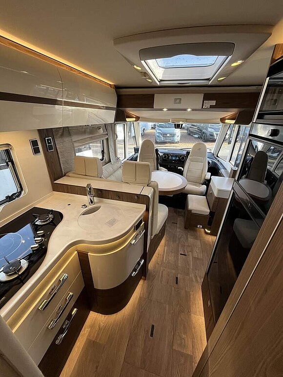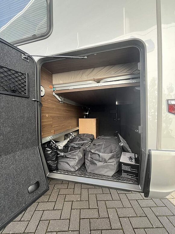 Arktis-Paket smart (Wärmetauscher für Warmwasserheizung, Wärmetauscher-Vorbereitung Mercedes-Benz, Warmwasser-Garagenbodenheizung, Isoliermatte für Frontscheibe außen, Isoliermatte für Fahrerhaus-Fußraum, lose beigelegt, Zuheizer (unterstützt die Heizung beim Erwärmen des Fahrzeugs), Riffelblechboden, Filzverkleidung und 2 zusätzliche Zurrschienen in Heckgarage)