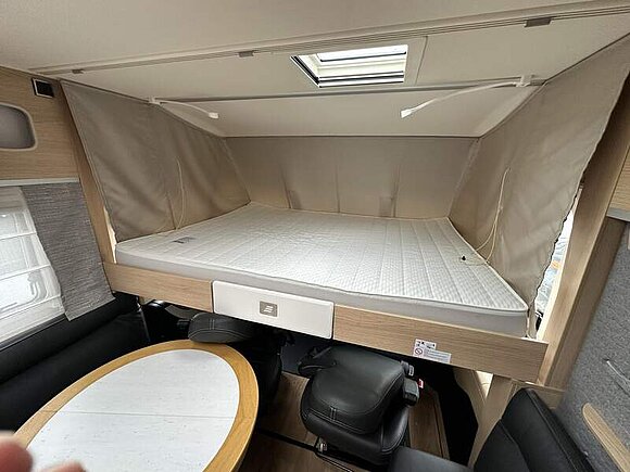 Elektrischer Rollladen im Bug inkl. Sichtschutzrollo für Frontschreibe (von unten nach oben zuziehbar) und Sonnenblendenfunktion