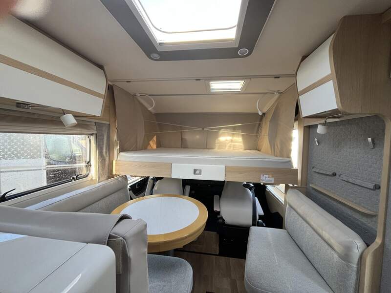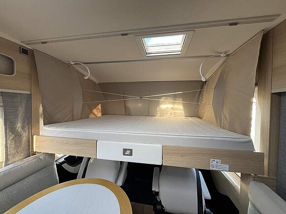 Elektrischer Rollladen im Bug inkl. Sichtschutzrollo für Frontschreibe (von unten nach oben zuziehbar) und Sonnenblendenfunktion