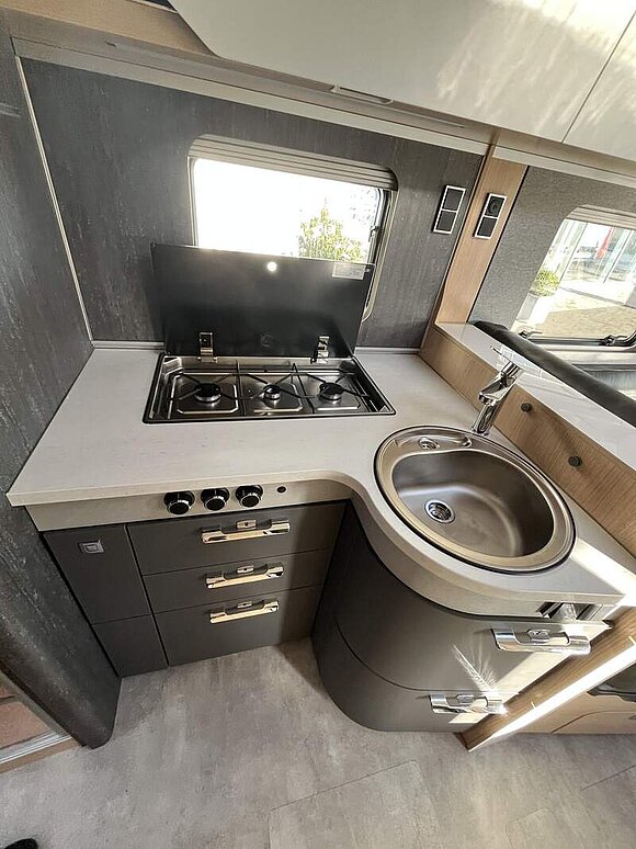 B-ML I BLACKLINE 780/790: Preisvorteil EUR 8.790,- (Mercedes-Benz Sprinter 4,43 t - 417 CDI - 125 KW/170 PS - Euro VI-E Außenfarbe Crystal-Silver-Metallic HYMER Premium Voll-LED Scheinwerfer Außenspiegel abgehängt in Schwarz, elektrisch beheiz- und verstellbar, inkl. Weitwinkelspiegel 16" Leichtmetallräder (schwarz) mit Ganzjahresbereifung Ablage für Smartphones inkl. wireless charging Funktion und Ladestandsanzeige Ladepaket Instrumententafel mit 2 x USB-C Stecker 5V / 1x 12V-Steckdose Lederlenkrad (bei Automatikgetriebe) Vollautomatische Klimaanlage THERMOTRONIC Aktiver Abstands-Assistent DISTRONIC PLUS inkl. Lenkrad- Multifunktionstasten Verkehrszeichen-Assistent Navigation & Smartphone-Integration für MBUX-System Designbeklebung BlackLine Elektrische Dachmarkise inkl. dimmbarer LED-Beleuchtung, Gehäuse schwarz, 550 x 300 cm Elektrischer Rollladen im Bug inkl. Sichtschutzrollo für Frontschreibe (von unten nach oben zuziehbar) und Sonnenblendenfunktion Schublade und Einlegewanne als Stauraum in der Sitzgruppe Einlegeboden mit Holzoberfläche 4 x 230 V / 1 x 12 V / 1 x Doppel-USB Zusatzsteckdosen sowie Wohnkomfortleuchten HYMER Connect Sensoren-Paket inkl. 1x Gasfüllstandssensor, 1x Temperatursensor und 2x Kontaktsensor Solaranlage 3 x 95 Watt mit Solarladeregler (MPPT) und Anzeige Spannbettlaken nach Maß für Heckbetten individuell an Matratzen angepasst Fußboden in Betonoptik 4 Kissen mit Bezug Automatische Gasflaschenumschaltanlage mit Crash Sensor und EisEx Gasfilter für automatische Gasflaschenumschaltanlage Wasserfilter für Frischwassersystem Smart Connect Wasserfüllstandsanzeige (in 1%-Schritten) 32" Smart LED-TV mit integrierten Lautsprechern, Fernbedienung, HYMER Smart-Multimedia-System mit Bluetooth (DVB-T/C, DVB-S2) und elektrischem Halter inkl. Receiver 5G-WLAN-Router mit Außenantenne und Dual-SIM-Slot (SIM-Karte nicht inbegriffen))