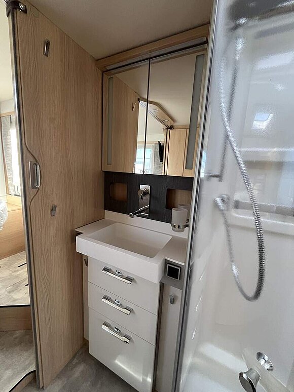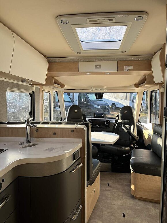 B-ML I BLACKLINE 780/790: Preisvorteil EUR 8.790,- (Mercedes-Benz Sprinter 4,43 t - 417 CDI - 125 KW/170 PS - Euro VI-E Außenfarbe Crystal-Silver-Metallic HYMER Premium Voll-LED Scheinwerfer Außenspiegel abgehängt in Schwarz, elektrisch beheiz- und verstellbar, inkl. Weitwinkelspiegel 16" Leichtmetallräder (schwarz) mit Ganzjahresbereifung Ablage für Smartphones inkl. wireless charging Funktion und Ladestandsanzeige Ladepaket Instrumententafel mit 2 x USB-C Stecker 5V / 1x 12V-Steckdose Lederlenkrad (bei Automatikgetriebe) Vollautomatische Klimaanlage THERMOTRONIC Aktiver Abstands-Assistent DISTRONIC PLUS inkl. Lenkrad- Multifunktionstasten Verkehrszeichen-Assistent Navigation & Smartphone-Integration für MBUX-System Designbeklebung BlackLine Elektrische Dachmarkise inkl. dimmbarer LED-Beleuchtung, Gehäuse schwarz, 550 x 300 cm Elektrischer Rollladen im Bug inkl. Sichtschutzrollo für Frontschreibe (von unten nach oben zuziehbar) und Sonnenblendenfunktion Schublade und Einlegewanne als Stauraum in der Sitzgruppe Einlegeboden mit Holzoberfläche 4 x 230 V / 1 x 12 V / 1 x Doppel-USB Zusatzsteckdosen sowie Wohnkomfortleuchten HYMER Connect Sensoren-Paket inkl. 1x Gasfüllstandssensor, 1x Temperatursensor und 2x Kontaktsensor Solaranlage 3 x 95 Watt mit Solarladeregler (MPPT) und Anzeige Spannbettlaken nach Maß für Heckbetten individuell an Matratzen angepasst Fußboden in Betonoptik 4 Kissen mit Bezug Automatische Gasflaschenumschaltanlage mit Crash Sensor und EisEx Gasfilter für automatische Gasflaschenumschaltanlage Wasserfilter für Frischwassersystem Smart Connect Wasserfüllstandsanzeige (in 1%-Schritten) 32" Smart LED-TV mit integrierten Lautsprechern, Fernbedienung, HYMER Smart-Multimedia-System mit Bluetooth (DVB-T/C, DVB-S2) und elektrischem Halter inkl. Receiver 5G-WLAN-Router mit Außenantenne und Dual-SIM-Slot (SIM-Karte nicht inbegriffen))
