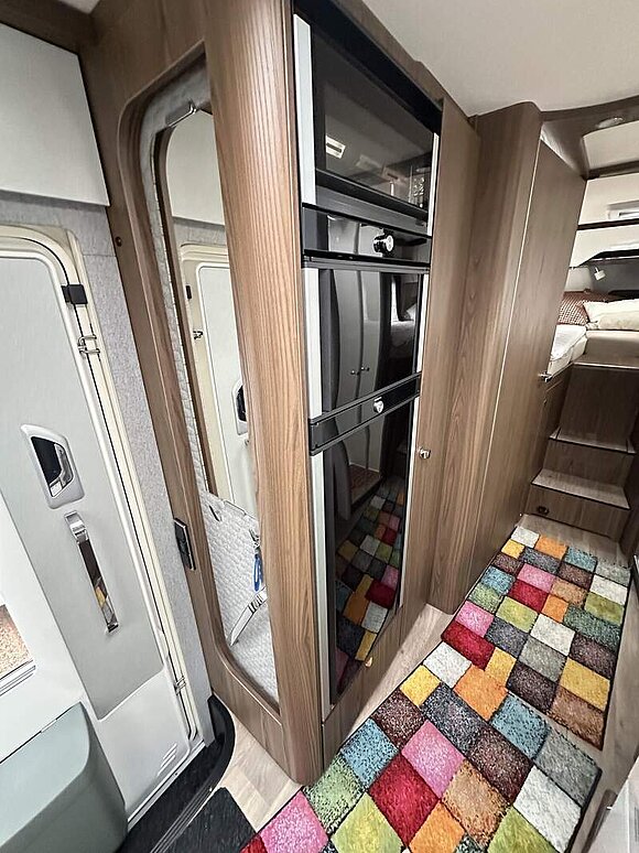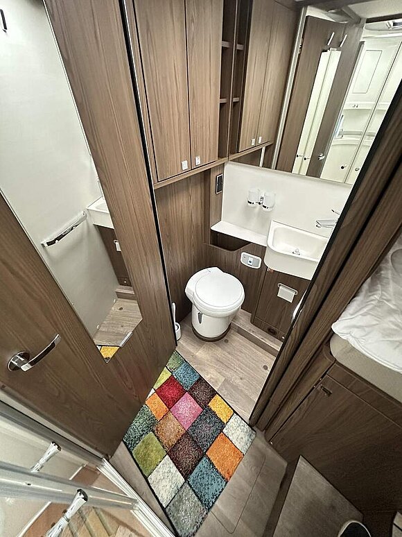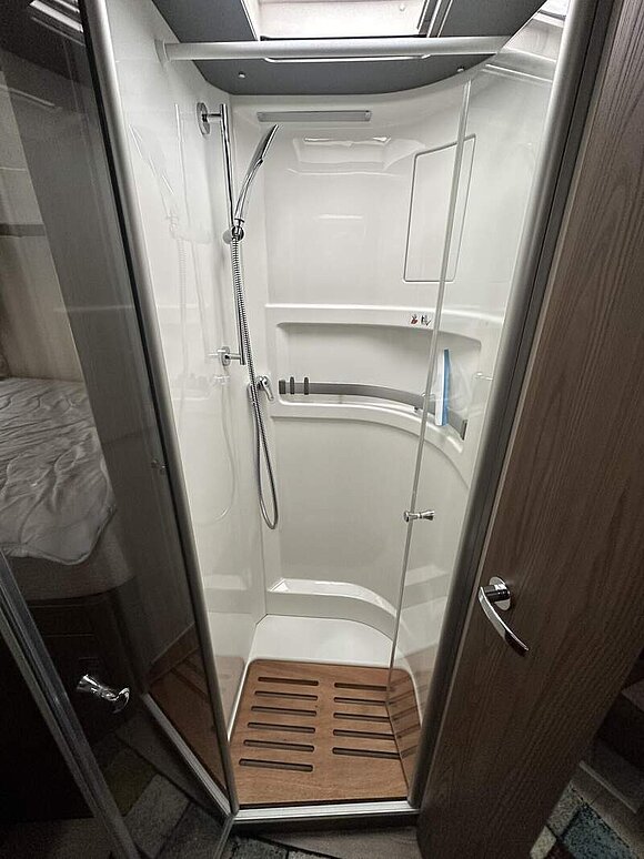 Wohnkomfort-Paket 3 (Holzlattenrost in der Dusche, 4 x 230 V / 1 x 12 V / 1 x Doppel-USB Zusatzsteckdosen sowie Wohnkomfortleuchten, Spannbettlaken Heckbett, 4 Kissen mit Bezug)