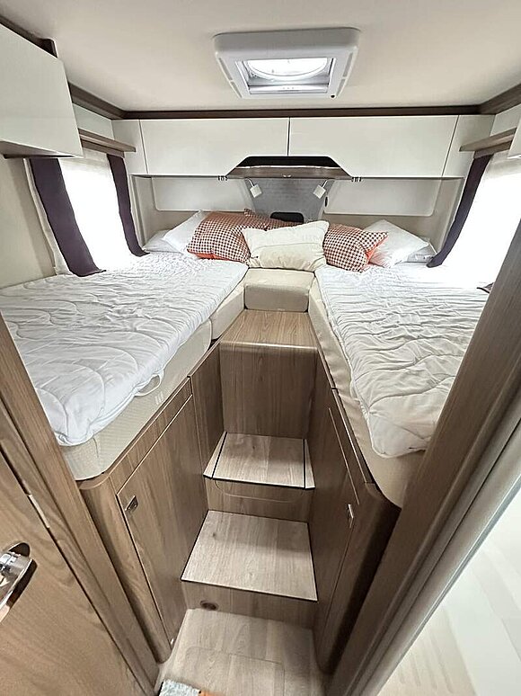 Zusatzpolster zwischen den Längseinzelbetten inkl. integriertem Komfortaufstieg und Tablett