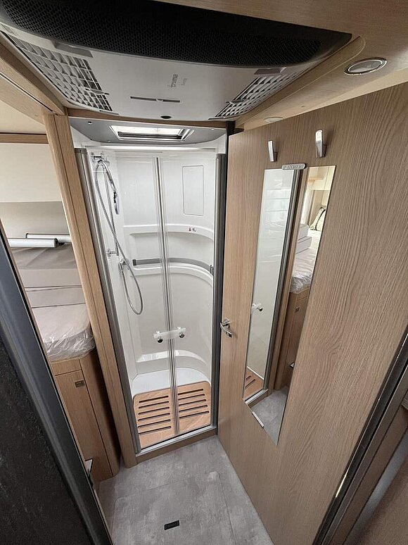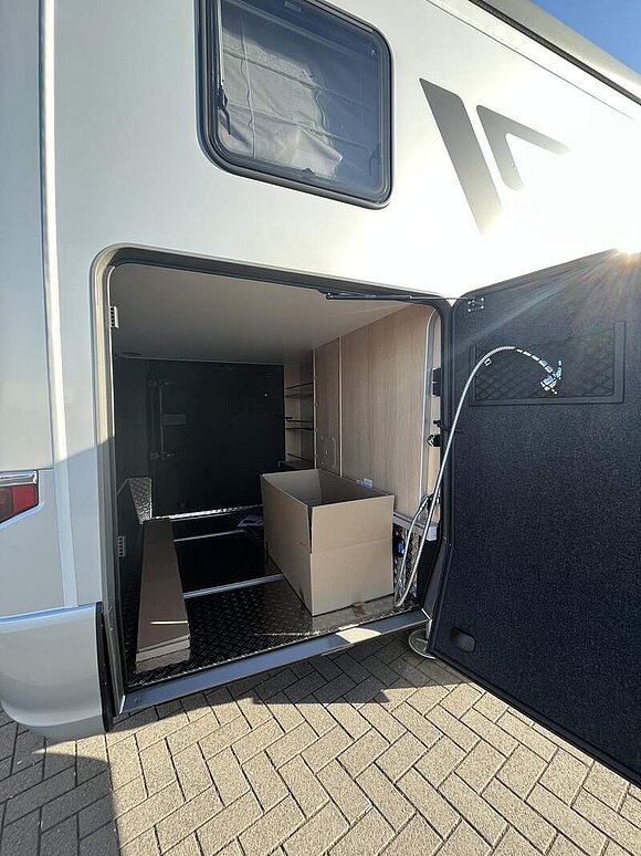 Arktis Paket (Wärmetauscher für Gas-Warmwasserheizung, Wärmetauscher-Vorbereitung Mercedes-Benz, Gas-Warmwasser-Garagenbodenheizung, Isolier-Trennvorhang für Fahrerhaus, doppellagig genäht, Isoliermatte für Fahrerhaus-Fußraum, lose beigelegt, Zuheizer (unterstützt die Heizung beim Erwärmen des Fahrzeugs), Gas-Warmwasserheizung, Riffelblechboden, Filzverkleidung und 2 zusätzliche Zurrschienen in Heckgarage)