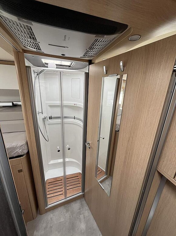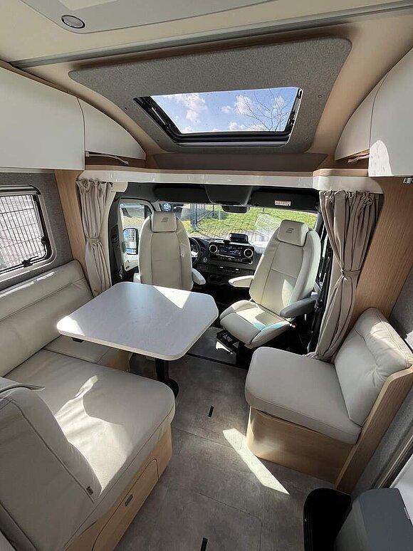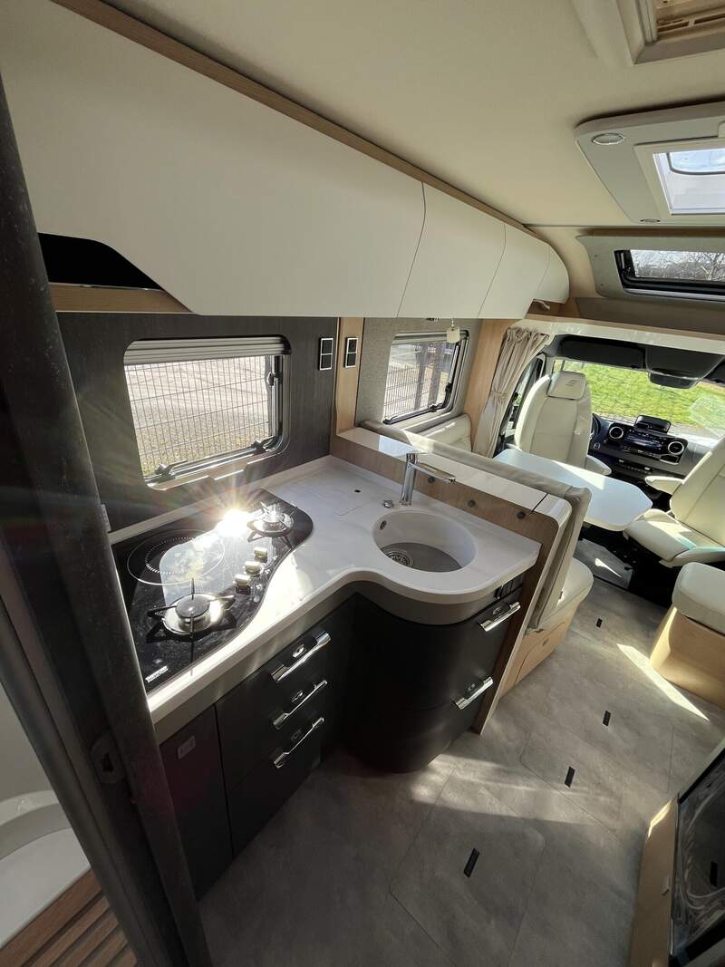 PAKETINHALTE Mercedes-Benz Sprinter 4,43 t - 417 CDI - 125 KW/170 PS - Euro VI-E Außenfarbe Fahrerhaus Obsidianschwarz (Metallic) Außenfarbe Aufbau Crystal-Silver-Metallic LED-High-Performance-Scheinwerfer Kühlergrill Chrom Nebelscheinwerfer mit Abbiegelicht Stoßfänger, Anbauteile und Kühlergrillrahmen in Wagenfarbe lackiert 16" Leichtmetallräder (schwarz) mit Ganzjahresbereifung Ablage für Smartphones inkl. wireless charging Funktion und Ladestandsanzeige Ladepaket Instrumententafel mit 2 x USB-C Stecker 5V / 1x 12V-Steckdose Lederlenkrad (bei Automatikgetriebe) Vollautomatische Klimaanlage THERMOTRONIC Aktiver Abstands-Assistent DISTRONIC PLUS inkl. Lenkrad- Multifunktionstasten Verkehrszeichen-Assistent Navigation & Smartphone-Integration für MBUX-System Elektrische Dachmarkise inkl. dimmbarer LED-Beleuchtung, Gehäuse schwarz, 450 x 300 cm Designbeklebung BlackLine Komfort L-Sitzgruppe mit Loungepolstern, längs-/quer verschiebbarem Tisch und 2 integrierten 3-Punkt-Gurten Schublade und Einlegewanne als Stauraum in der Sitzgruppe Automatische Gasflaschenumschaltanlage mit Crash Sensor und EisEx Gasfilter für automatische Gasflaschenumschaltanlage Solaranlage 3 x 95 Watt mit Solarladeregler (MPPT) und Anzeige Einlegeboden mit Holzoberfläche 4 x 230 V / 1 x 12 V / 1 x Doppel-USB Zusatzsteckdosen sowie Wohnkomfortleuchten HYMER Connect Sensoren-Paket inkl. 1x Gasfüllstandssensor, 1x Temperatursensor und 2x Kontaktsensor Spannbettlaken nach Maß für Heckbetten individuell an Matratzen angepasst 4 Kissen mit Bezug Fußboden in Betonoptik, Wasserfilter für Frischwassersystem Smart Connect Wasserfüllstandsanzeige (in 1%-Schritten) 32" Smart LED-TV mit integrierten Lautsprechern, Fernbedienung, HYMER Smart-Multimedia-System mit Bluetooth (DVB-T/C, DVB-S2) und elektrischem Halter inkl. Receiver 5G-WLAN-Router mit Außenantenne und Dual-SIM-Slot (SIM-Karte nicht inbegriffen))