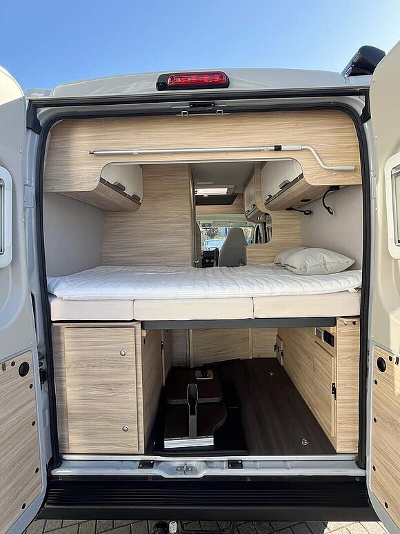 Vollwertiger Camper mit Bad, Küche und festem Bett