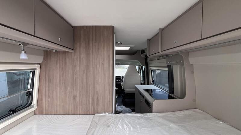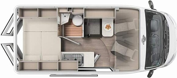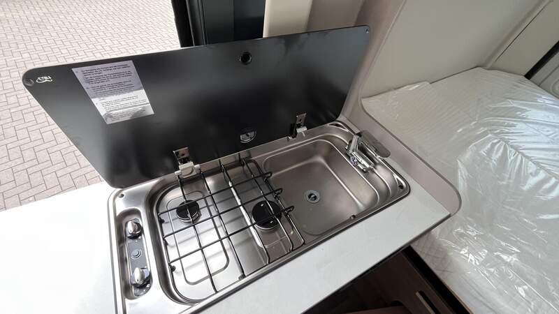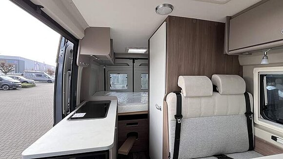 Basic Paket (Dachhaube Midi Heki 70 x 50 cm über Sitzgruppe, Duschausstattung, Fenster im Bad, Kleiderstange in der Nasszelle, Breite Einstiegsstufe, Drehplatte für Tischerweiterung an der Sitzgruppe)