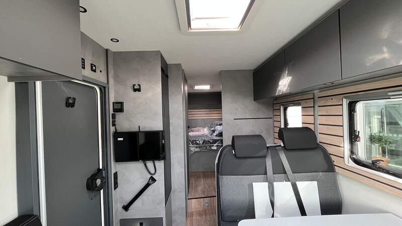 Base Kit (Verdunklungsjalousien im Fahrerhaus, Fliegengitter-Aufbautür, Isofix Kindersitzbefestigung für 3. und 4. Sitzplatz in Fahrtrichtung, Duschrost, Light Moments: Indirekte Ambientebeleuchtung über den Dachstauschränken, Light Moments: Küchenrückwand beleuchtet, Light Moments: Fensterverkleidung im Wohnraum beleuchtet)