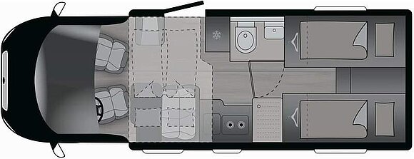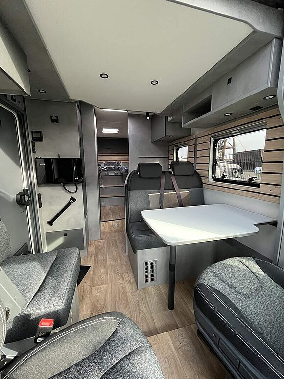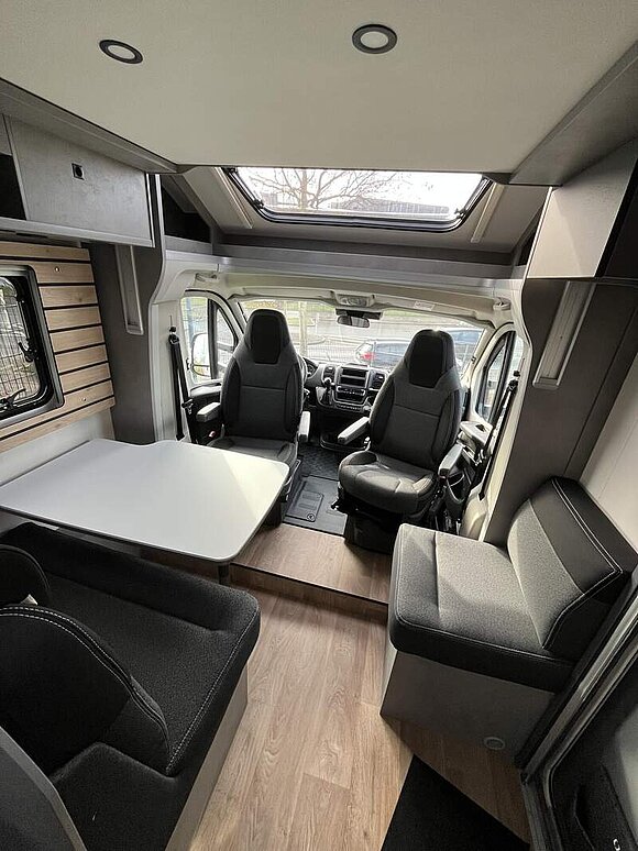 Base Kit (Verdunklungsjalousien im Fahrerhaus, Fliegengitter-Aufbautür, Isofix Kindersitzbefestigung für 3. und 4. Sitzplatz in Fahrtrichtung, Duschrost, Light Moments: Indirekte Ambientebeleuchtung über den Dachstauschränken, Light Moments: Küchenrückwand beleuchtet, Light Moments: Fensterverkleidung im Wohnraum beleuchtet)