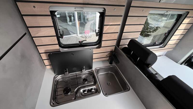 Base Kit (Verdunklungsjalousien im Fahrerhaus, Fliegengitter-Aufbautür, Isofix Kindersitzbefestigung für 3. und 4. Sitzplatz in Fahrtrichtung, Duschrost, Light Moments: Indirekte Ambientebeleuchtung über den Dachstauschränken, Light Moments: Küchenrückwand beleuchtet, Light Moments: Fensterverkleidung im Wohnraum beleuchtet)