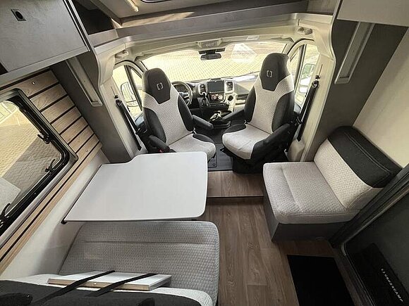 Base Kit (Verdunklungsjalousien im Fahrerhaus, Fliegengitter-Aufbautür, Isofix Kindersitzbefestigung für 3. und 4. Sitzplatz in Fahrtrichtung, Duschrost, Light Moments: Indirekte Ambientebeleuchtung über den Dachstauschränken, Light Moments: Küchenrückwand beleuchtet, Light Moments: Fensterverkleidung im Wohnraum beleuchtet)