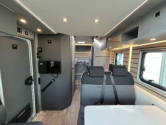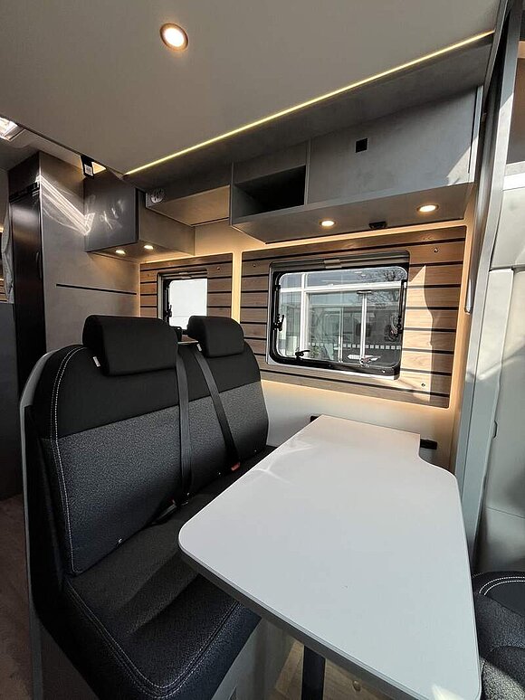 Base Kit (Verdunklungsjalousien im Fahrerhaus, Fliegengitter-Aufbautür, Isofix Kindersitzbefestigung für 3. und 4. Sitzplatz in Fahrtrichtung, Duschrost, Light Moments: Indirekte Ambientebeleuchtung über den Dachstauschränken, Light Moments: Küchenrückwand beleuchtet, Light Moments: Fensterverkleidung im Wohnraum beleuchtet)