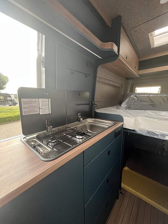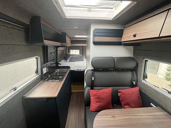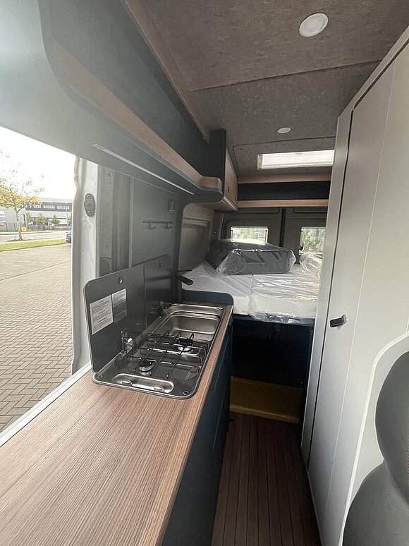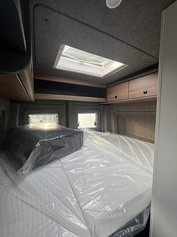 Camping-Paket (Faltverdunklung Frontscheibe & Verdunklung Seitenscheiben Fahrerhaus, Zwei zusätzliche Multifunktions-Akkuleuchten, Zwei Kissen farblich passend zum Wohnraum, Matratzentopper, Magnetischer Vergrößerungsspiegel)