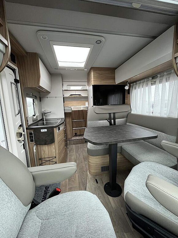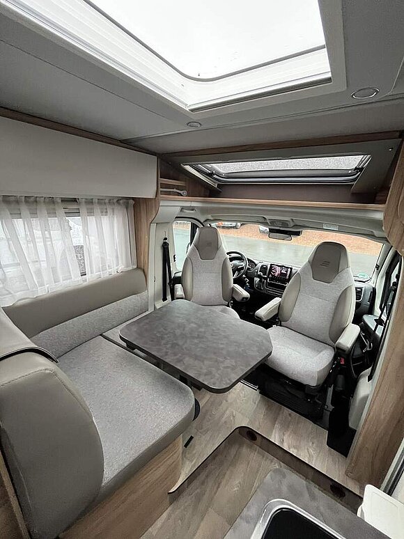 Bettenbau für Komfort L-Sitzgruppe inkl. Zusatzpolster und absenkbarem Tisch unter Einbeziehung des Fahrersitzes