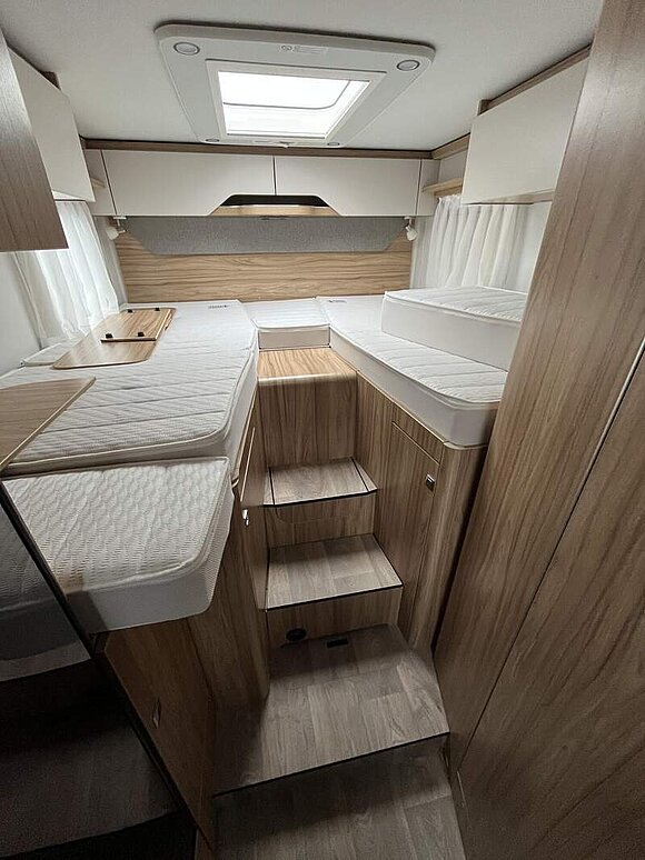 Zusatzpolster zwischen den Längseinzelbetten inkl. integrierter Komfortaufstieg und Tablett