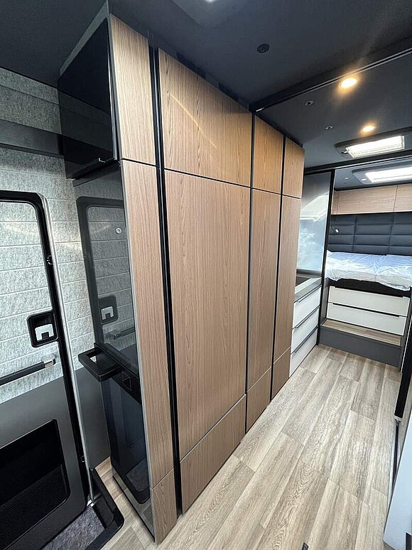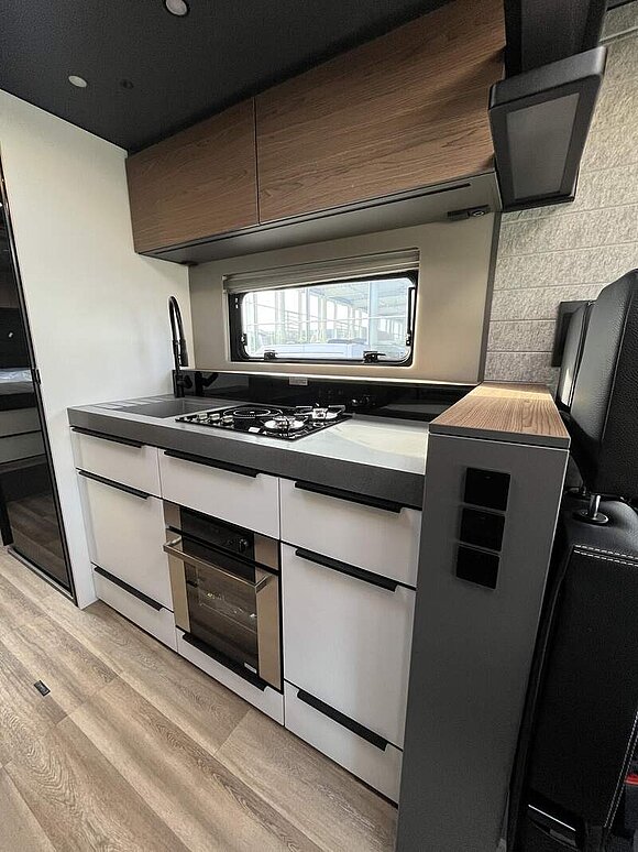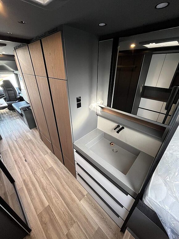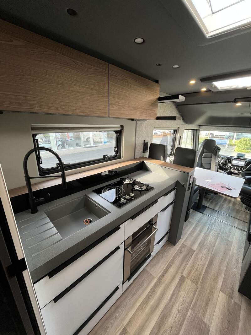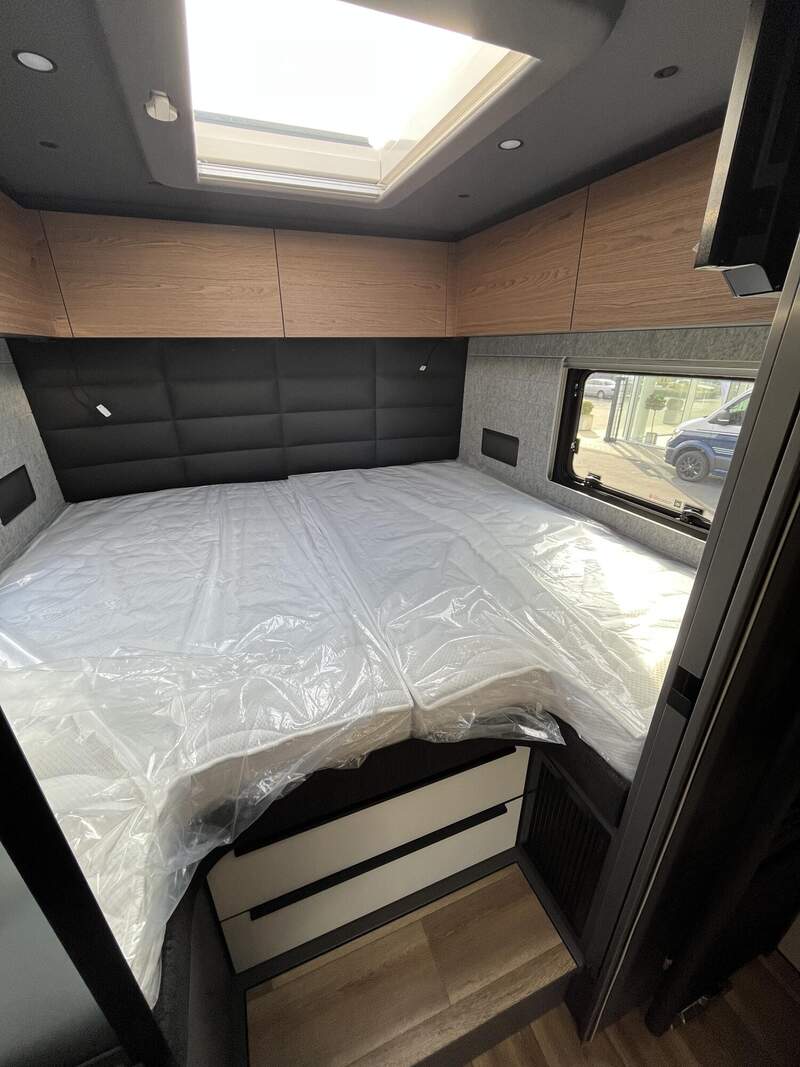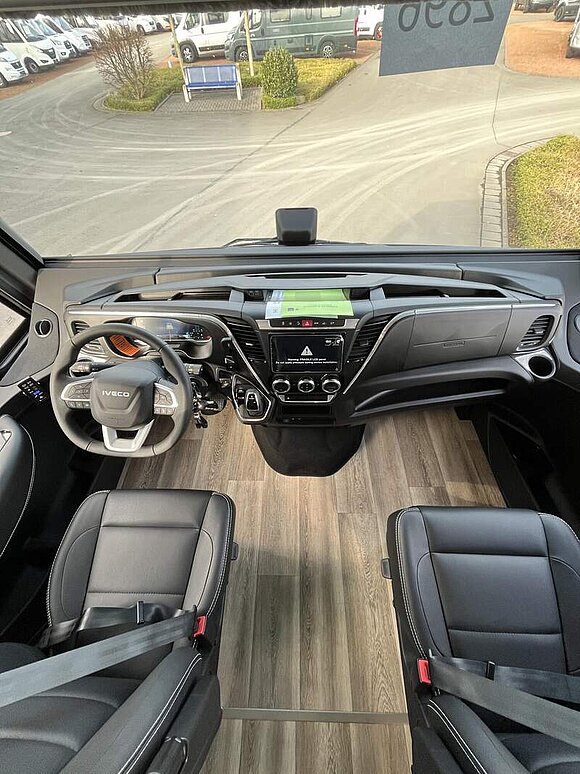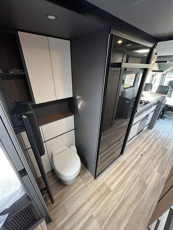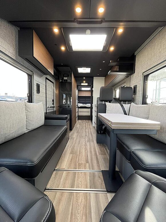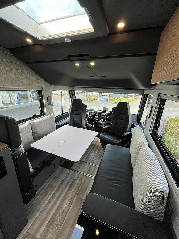 LP - Liner Paket (Echtglasfenster, getönt, in schwarz lackiertem Alu-Rahmen mit thermischer Trennung, Warmwasser-Fußbodenheizung inkl. Fahrerhaus, Festtanktoilette mit 200 l Tank inkl. Keramikschüssel, SOG-Toilettenentlüftung)