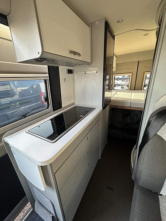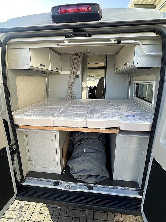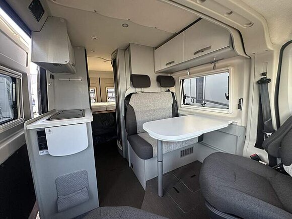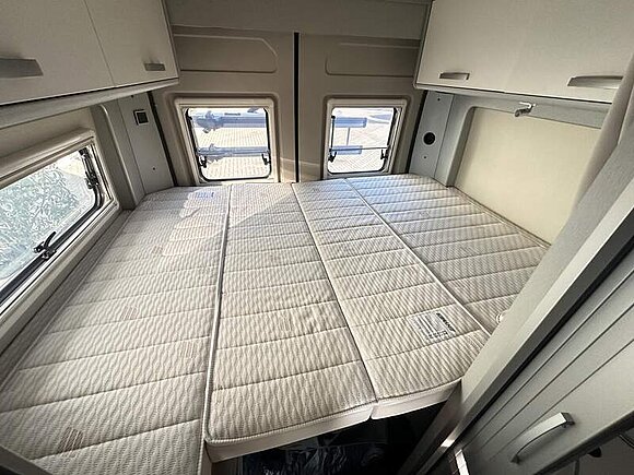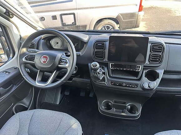 Fiat Ducato - 103 KW/140 PS / 3,5 t, 90 l Kraftstofftank, 16" Leichtmetallräder mit Bereifung 225/75 R16 Schwarz matt, Lenkrad und Schaltknauf in Leder, LED-Tagfahrlicht, Stoßfänger in Wagenfarbe lackiert, Kühlergrill-Rahmen Schwarz, Scheinwerfer mit schwarzem Rahmen, Automatische Klimaanlage mit Pollenfilter, Nebelscheinwerfer inkl. Abbiegelicht, Elektrische Außenspiegel, Navigationssystem inkl. Rückfahrkamera, Multifunktionslenkrad, Aufstelldach in Schwarz (Maxi-Doppelbett mit Schlafkomfortsystem), Markise mit Spezialadapter für das Aufstelldach, Gehäuse anthrazit, 350 x 250 cm, Ausstellfenster im Heck in Fahrtrichtung rechts inkl. Vedunkelungsrollo und Mückenschutz, Faltverdunkelung für Fahrerhaus, 2 x 230 V / 1 x 12 V Zusatzsteckdosen, ISOFIX - Kindersitzbefestigung für Wohnraumsitzbank