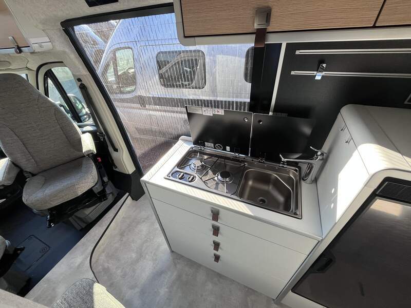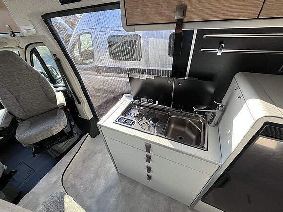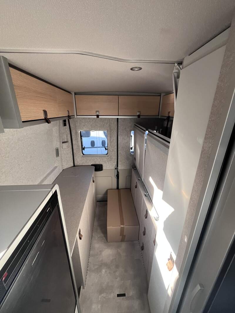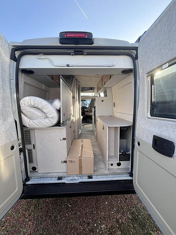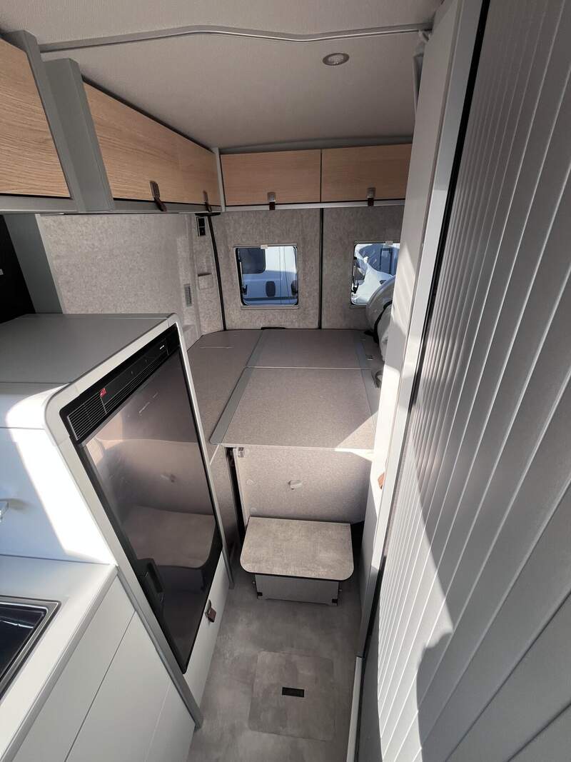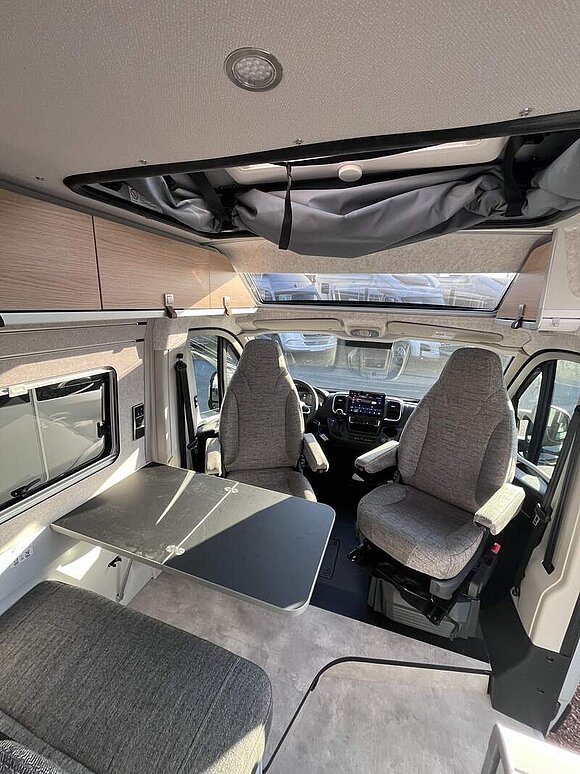 Wohnkomfort Paket (Skyview Fenster Fahrerhaus inkl. Verdunklung, Ambient-Light-System: Mehr-Ebenen Lichtsystem mit dynamischer und individueller Steuerung der Beleuchtung (inkl. Lichttemperatur) sowie stimmungsvoller Sockelbeleuchtung, Wohnwelt "HOME" (2 Kissen und Stofftasche), Spannbettlaken nach Maß für Heckbetten individuell an Matratzen angepasst, Einlegeboden mit Korkoberfläche)