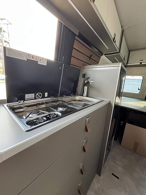 Ausstellfenster im Heck in Fahrtrichtung links inkl. Verdunkelungsrollo und Mückenschutz