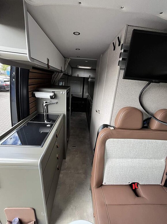 Wohnkomfort-Paket GCS (Ambient-Light-System: Mehr-Ebenen Lichtsystem mit dynamischer und individueller Steuerung der Beleuchtung (inkl. Lichttemperatur) sowie stimmungsvoller Sockelbeleuchtung, Wohnwelt "HOME" (2 Kissen und Stofftasche), Spannbettlaken nach Maß für Heckbetten individuell an Matratzen angepasst, Einlegeboden mit Korkoberfläche)