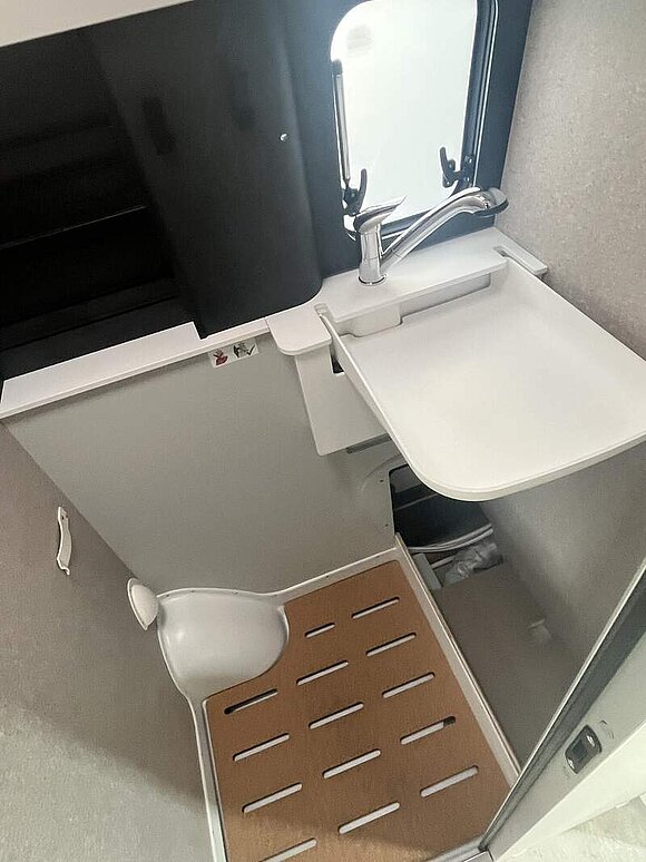 Auf Wunsch die Nachrüstung einer Toilette möglich. Beispielsweise Clesana EUR 2.490,- oder Thetford EUR 1.490,-
