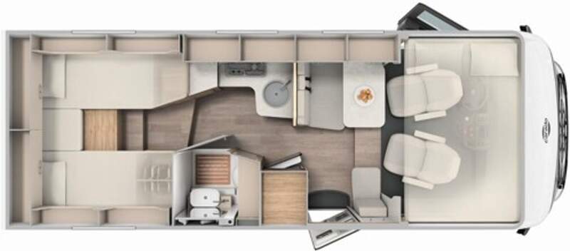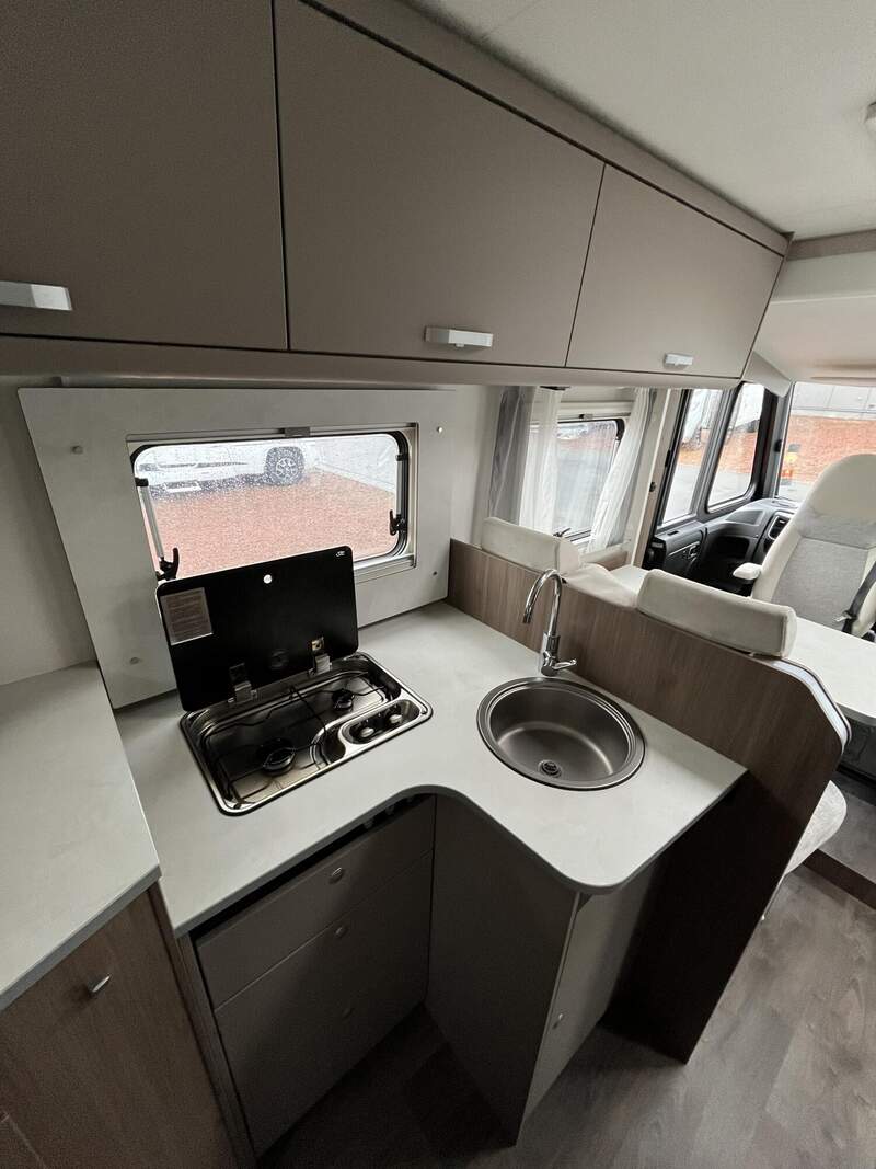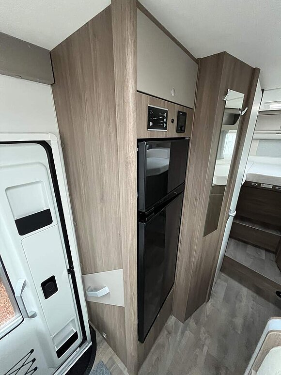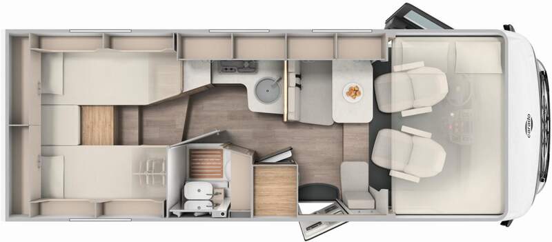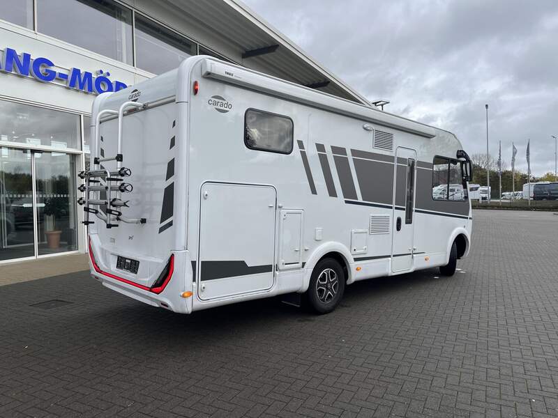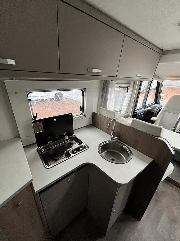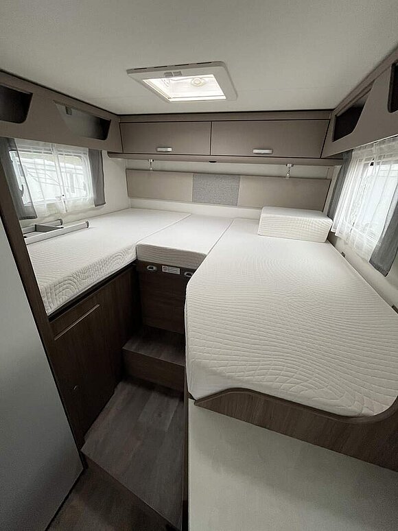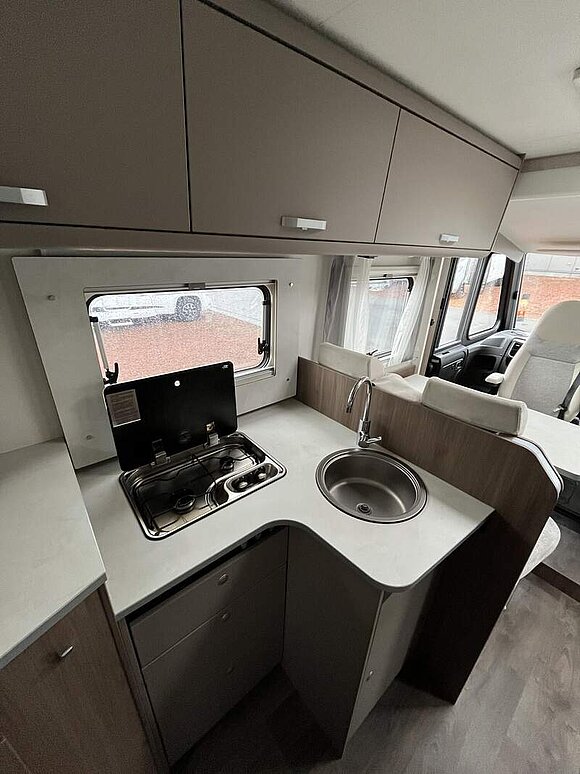 pro+ Paket (Basic Paket, Style Paket, 16" Alufelgen, Großer Kühlschrank 156 l mit separatem Frosterfach 29 l, Abwassertank isoliert, Rahmenfenster, Markise 4,5 m, TV Paket (22" Flachbildschirm + Halter, Satantenne Flatsat Classic 65), Design Applikation Heck, 2. Außenstauraumklappe (Größe modellabhängig), Beklebung pro+)