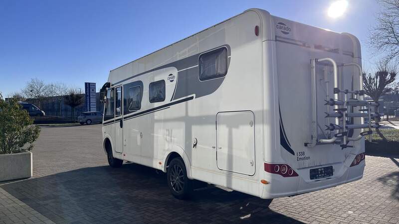 Emotion-Paket (Seitenwände in Glattblech weiß, Beklebung Carado Emotion, Rahmenfenster, Design Applikation Heck)