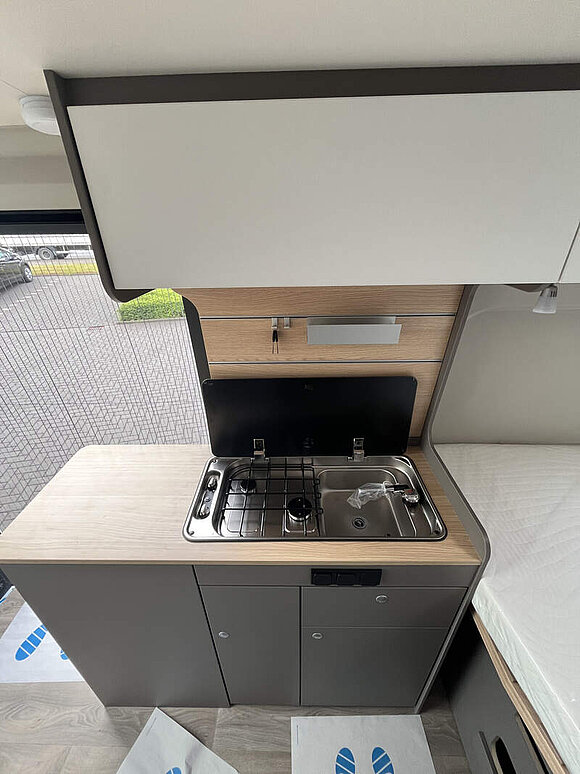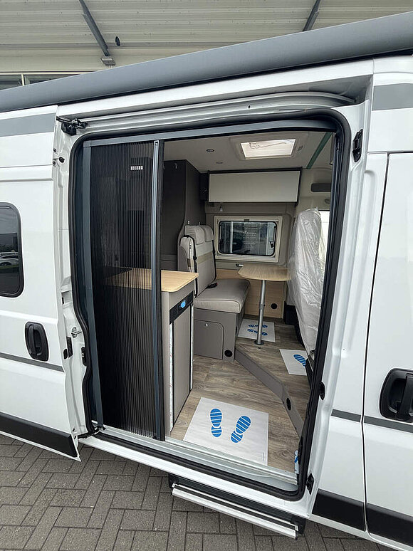 Heck Edition Paket: Markise, Elektrische Einstiegstufe Omnistep, Fliegengittertür, Kleiderstange in Nasszelle, Beklebung, Bestickung der Kopfstützen)