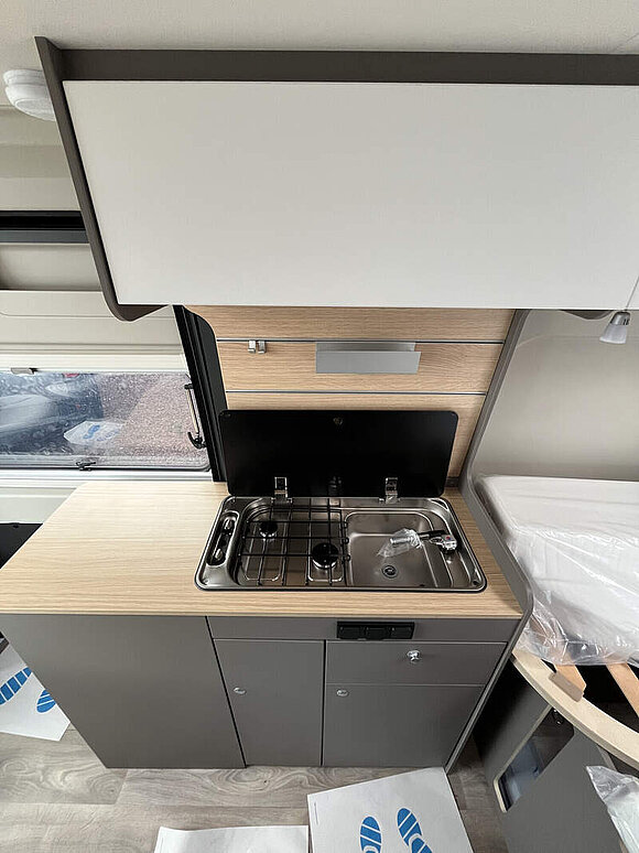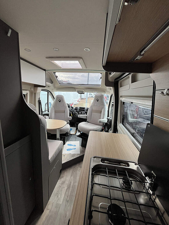 Heck Edition Paket: Markise, Elektrische Einstiegstufe Omnistep, Fliegengittertür, Kleiderstange in Nasszelle, Beklebung, Bestickung der Kopfstützen)