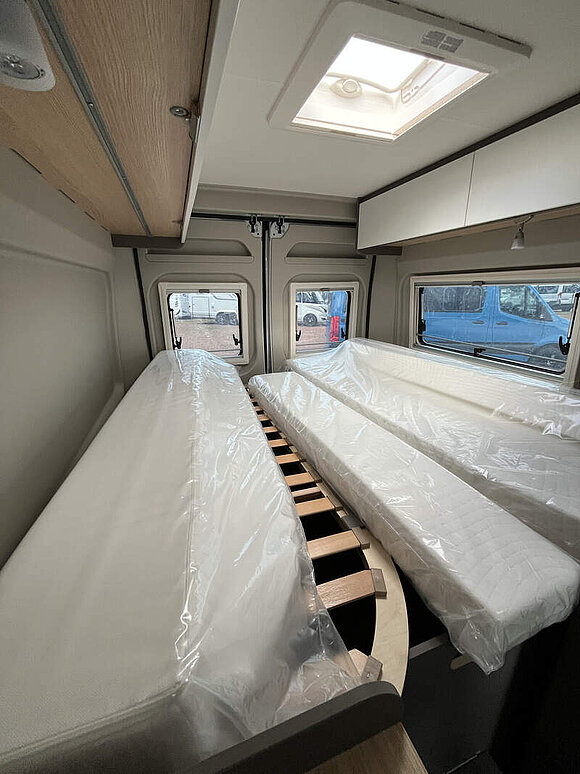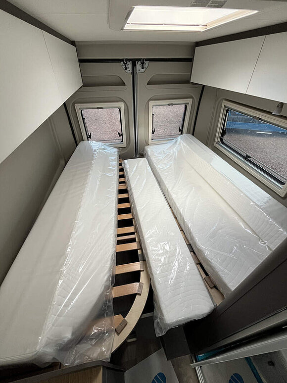 Heck Edition Paket: Markise, Elektrische Einstiegstufe Omnistep, Fliegengittertür, Kleiderstange in Nasszelle, Beklebung, Bestickung der Kopfstützen)