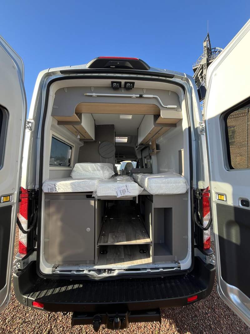 Innovan Ford Paket (592) (Insektenschutztür, Breite Einstiegsstufe (Elektrisch), Duschausstattung (Brausekopf ausziehbar, Duschvorhang, Führungsschiene, Brausehalter, Duschwanne), Fahrerhausverdunklung (Plissees), Markise Anthrazit, Drehplatte für Tischerweiterung, Dachhaube Klarglas 700x500mm inkl. Verdunklungsrollo und Insektenschutz über der Sitzgruppe, USB-Steckdose in Stromschiene, TV-Vorbereitung, Mittelsitzgruppe umbaubar zum Bett mit Zusatzpolster, Abwassertank isoliert und manuell elektrisch beheizt, Klappbare Wäschestange im Toilettenraum/Dusche, Spannbetttuch uni Einzelbetten)