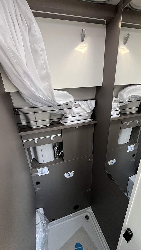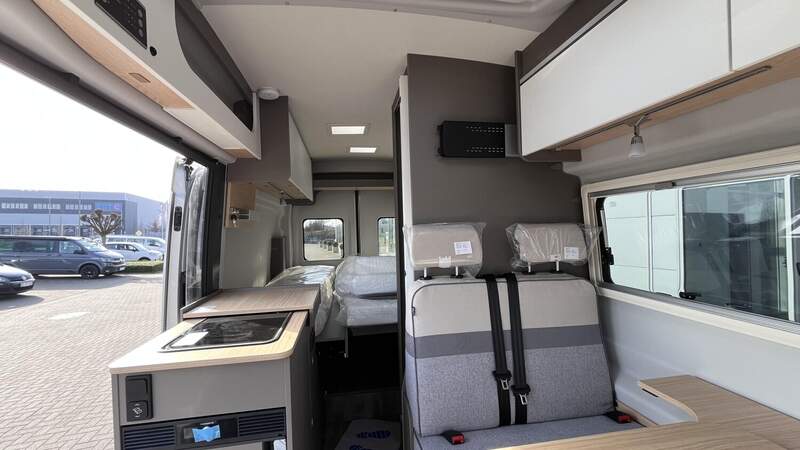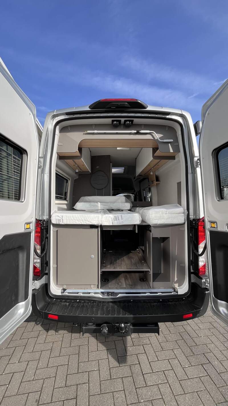Innovan Ford Paket (592) (Insektenschutztür, Breite Einstiegsstufe (Elektrisch), Duschausstattung (Brausekopf ausziehbar, Duschvorhang, Führungsschiene, Brausehalter, Duschwanne), Fahrerhausverdunklung (Plissees), Markise Anthrazit, Drehplatte für Tischerweiterung, Dachhaube Klarglas 700x500mm inkl. Verdunklungsrollo und Insektenschutz über der Sitzgruppe, USB-Steckdose in Stromschiene, TV-Vorbereitung, Mittelsitzgruppe umbaubar zum Bett mit Zusatzpolster, Abwassertank isoliert und manuell elektrisch beheizt, Klappbare Wäschestange im Toilettenraum/Dusche, Spannbetttuch uni Einzelbetten)