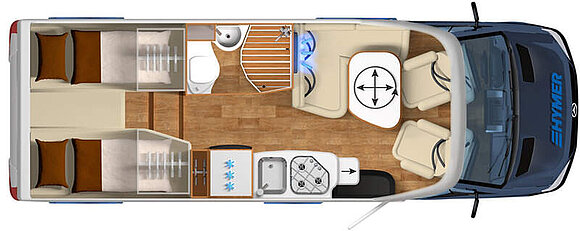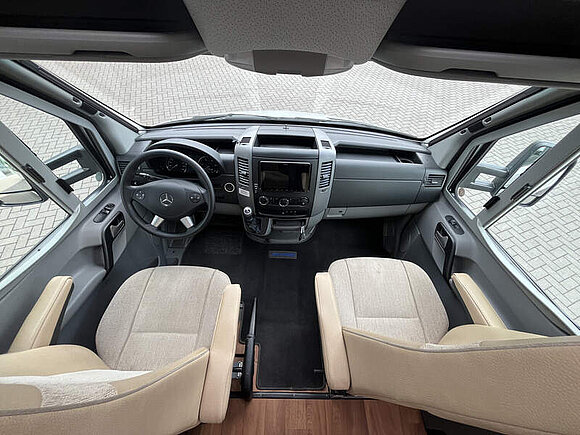 HYMER ML-T Komfort-Line Paket (Tempomat (Mercedes), Klimaanlage Tempmatik, Panoramadach über Fahrerhaus manuell ausstellbar, Fliegenschutzrollo an der Eingangstüre, Multifunktionslenkrad mit Reiserechner)